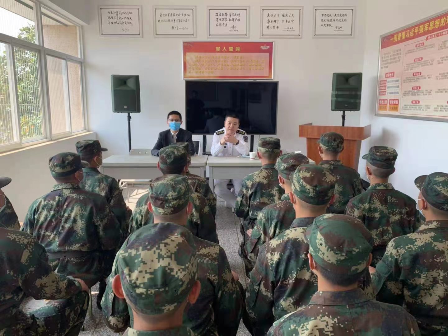 在火箭军某部及武警某部新兵集训中心回访中,刘飞、常乐等同志与新兵所在部队的领导、带兵骨干相继座谈,了解新兵思想状况和服役表现,进一步与部队畅通联系渠道。同时,在与新兵们集体谈心、做好新兵思想稳定工作之际,一并带去家乡、学校党政领导以及亲人的问候。