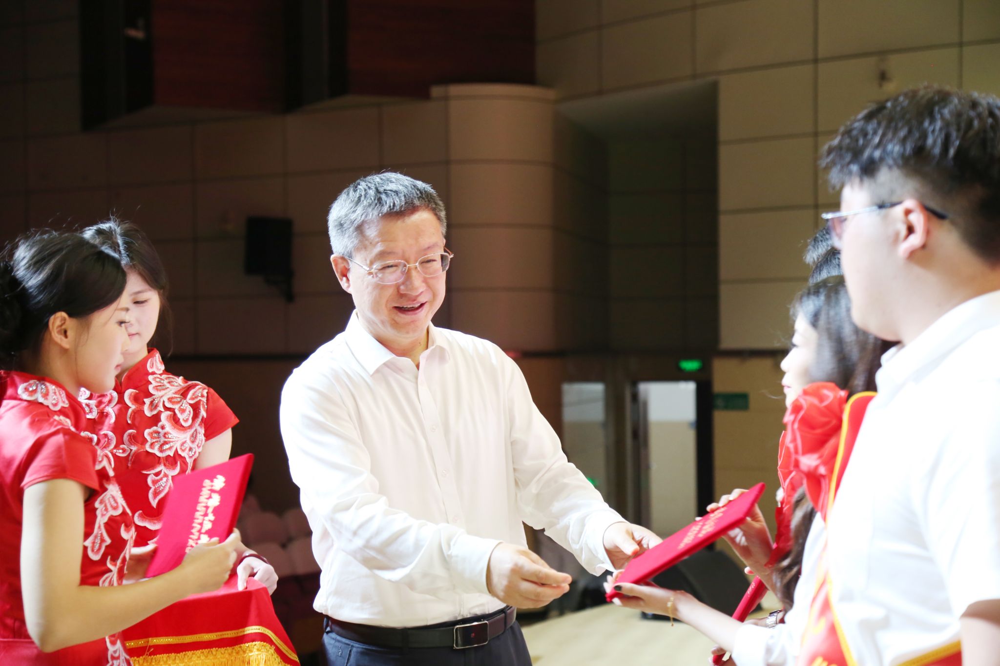 杨家庆在主持典礼时,希望2024届毕业生永远珍藏大学生活的难忘时光,珍惜彼此结下的深情厚谊,用青春的激情、执着的信念、过硬的本领,开创更加绚丽的人生。
