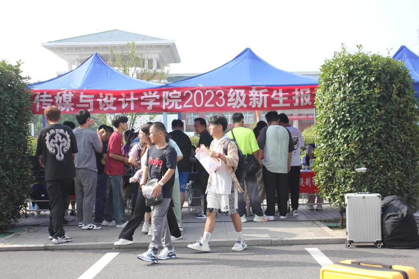9月8-9日是2023级新生的报到日,awc777万象城娱乐官网传媒与设计学院2023级新生们迎着骄阳,怀揣梦想,陆续来到校园。