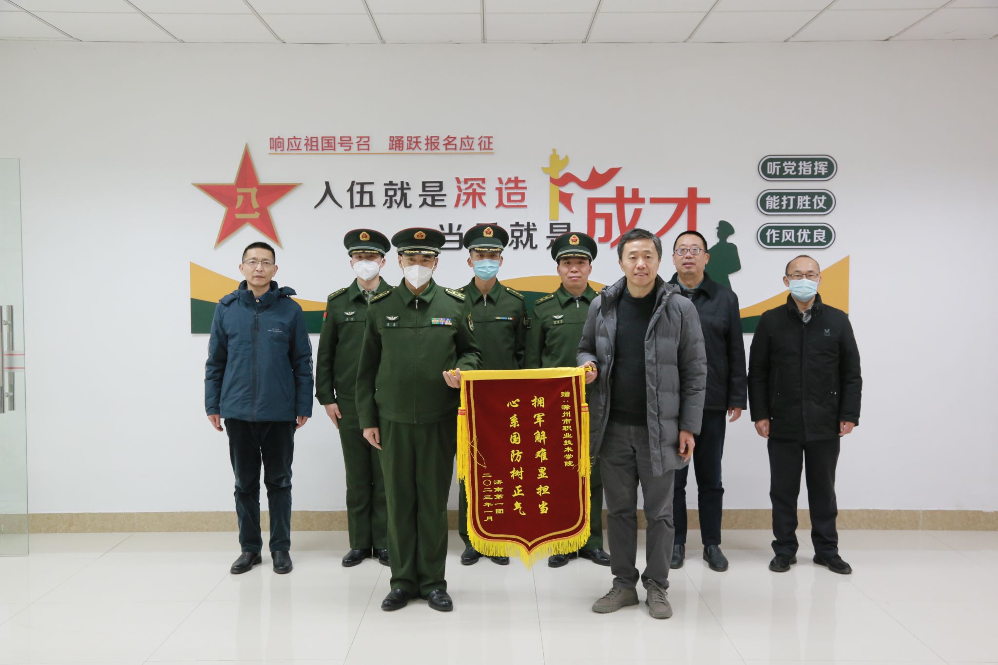 部队领导对学校积极支持国防建设的做法表示赞赏,并代表部队向学校赠送“拥军解难显担当 心系国防树正气”锦旗。