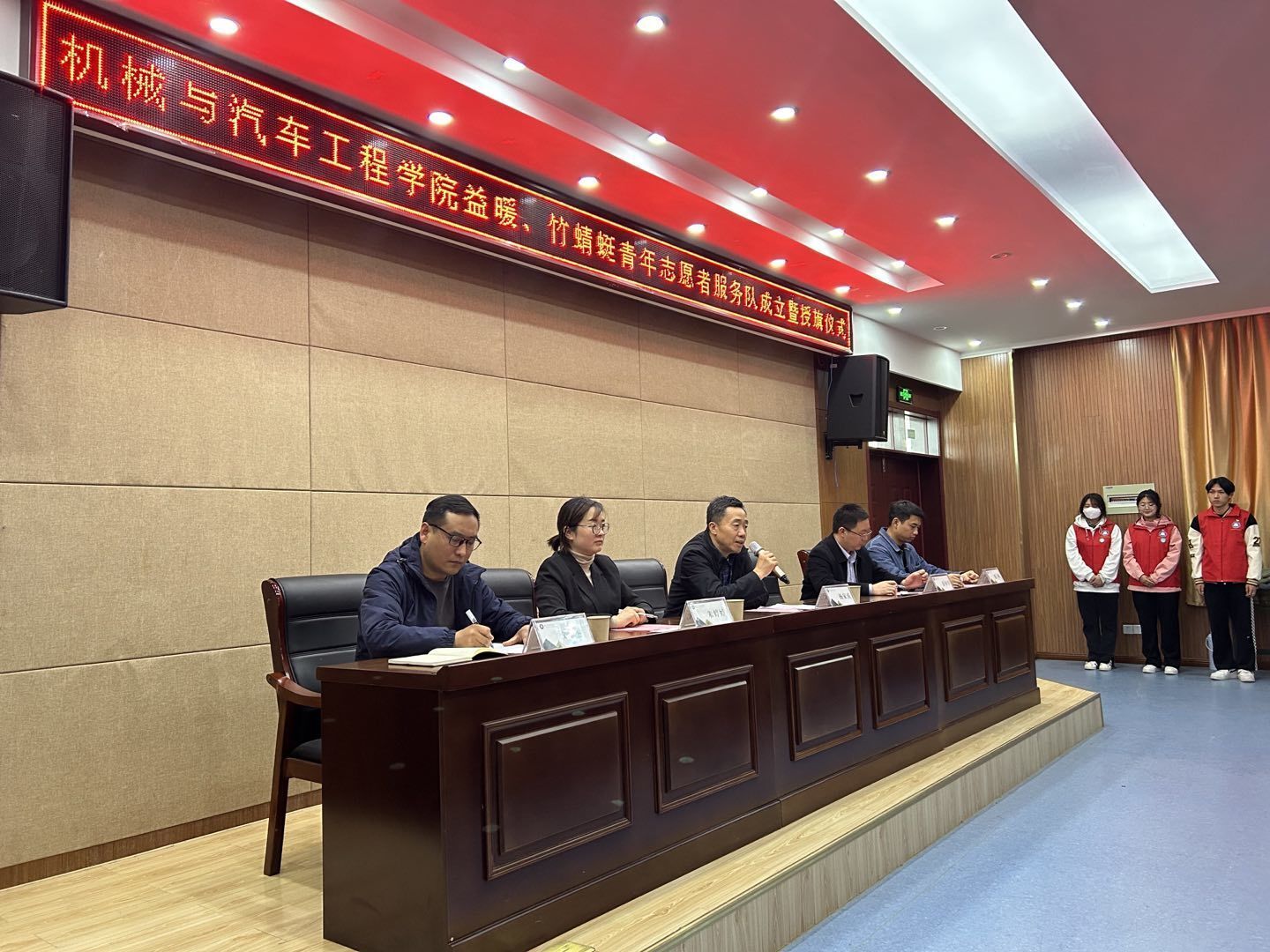 青春勇担当,志愿正当时。此次授旗仪式见证了机械与汽车工程学院益暖、竹蜻蜓青年志愿者服务队的成立,传递了新时代志愿服务精神。我院将继续开展有意义、有特色的志愿服务活动,吸引更多青年学生加入到志愿者队伍中来,引导他们真正成为志愿精神的宣传者、实践者和传播者。