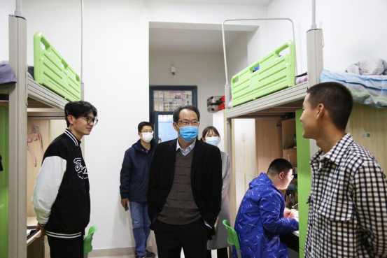 “在学校里学习和生活上有没有什么难处?学校的食堂饭菜怎么样?线上学习效果如何?”校领导们每到一处都与同学们亲切交流,询问同学们近期学习与生活情况。 并嘱咐学生在疫情防控期间,听从学校和老师的安排,保持健康生活方式,做好个人清洁卫生,认真完成线上课程学习,积极开展锻炼活动,保持乐观的心态和身体健康。
