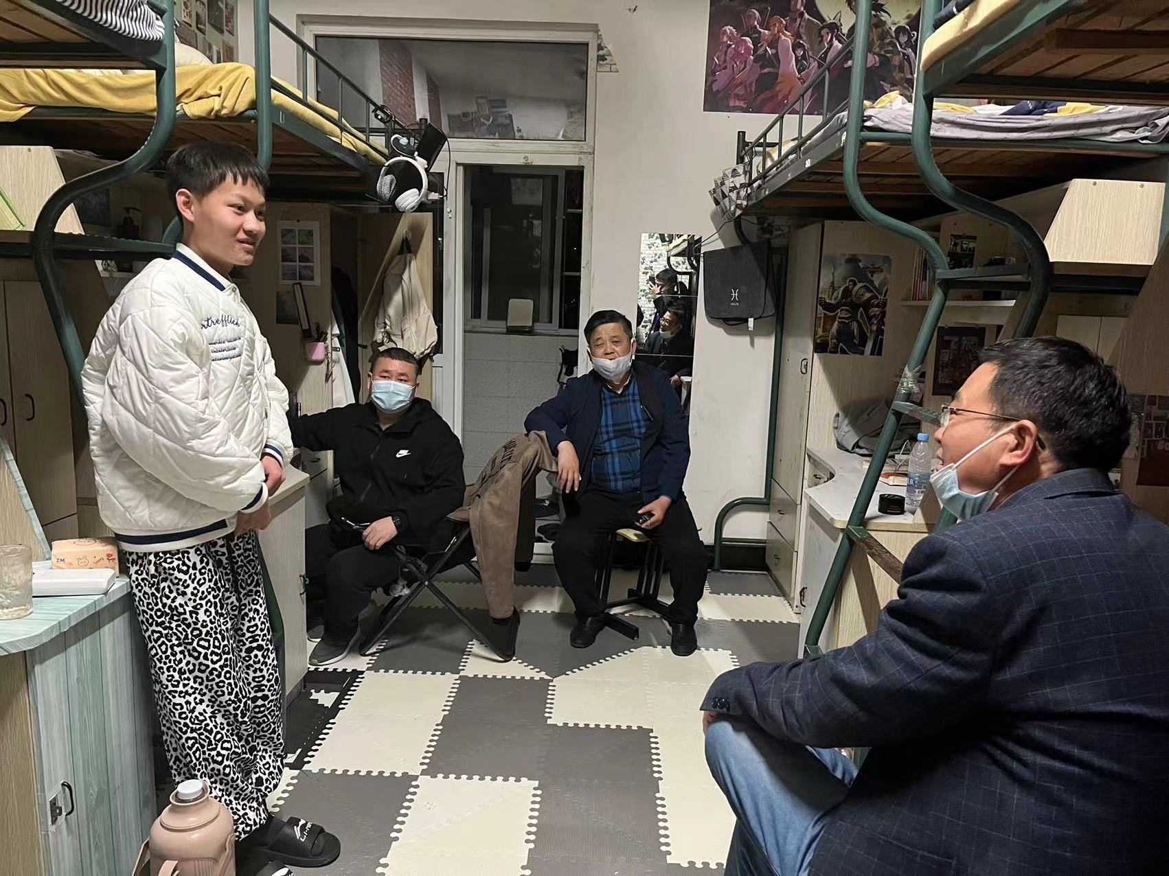 2022年4月15日晚,校党委委员、纪委书记杨华龙,图书馆馆长苏和堂,互联网学院党组织负责人马来军,电气工程学院副院长燕相松等一行人走访宿舍区域,到宿舍楼进行现场查岗巡视。