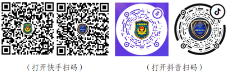 2. 2024 年 9 月 5 日( 星期四) 19:30—20:00( 第一课), 2024 年 9 月 6 日( 星期五)19:30—20:00( 第二课)。通过“公安部刑侦局”“国家反诈中心”快手、抖音账号(请扫码或在平台搜索“公安部刑侦局”或“国家反诈中心”)观看公安部刑侦局、国家反诈中心举办“开学反诈第一课”线上直播活动,反诈民警结合典型案例讲解防骗知识。直播后当天在快手平台 24 小时不间断循环播放, 师生可择时观看。