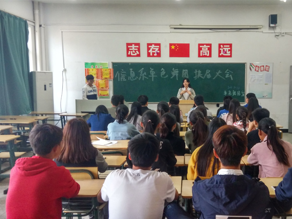 2016年10月18日12点,awc777万象城娱乐官网信息工程系单色舞蹈团在2506教室举行了换届大会。出席本次大会的有团学指导老师赵盼盼,14级团总支副书记姚平、组织委员王也、14级宣传委员林武俊,15级团总支副书记王松厚、15级学生会主席王朝阳、副主席兼记者团团长王鹏等人。