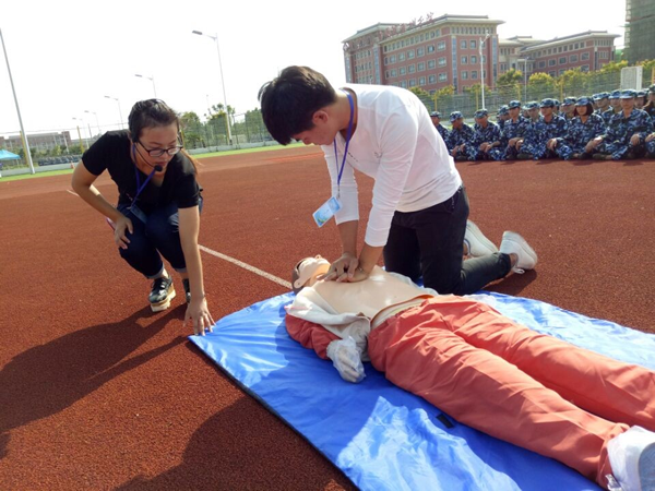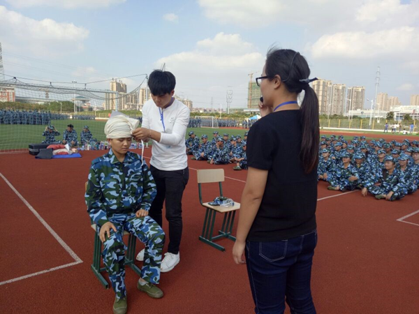 为了提高awc官网大一新生应对突发事件的能力,推动平安校园建设。2016年9月19日下午2点30分大一新生军训期间,一场由信息工程系团总支主办的“新生应急救护培训”在新操场举行。
