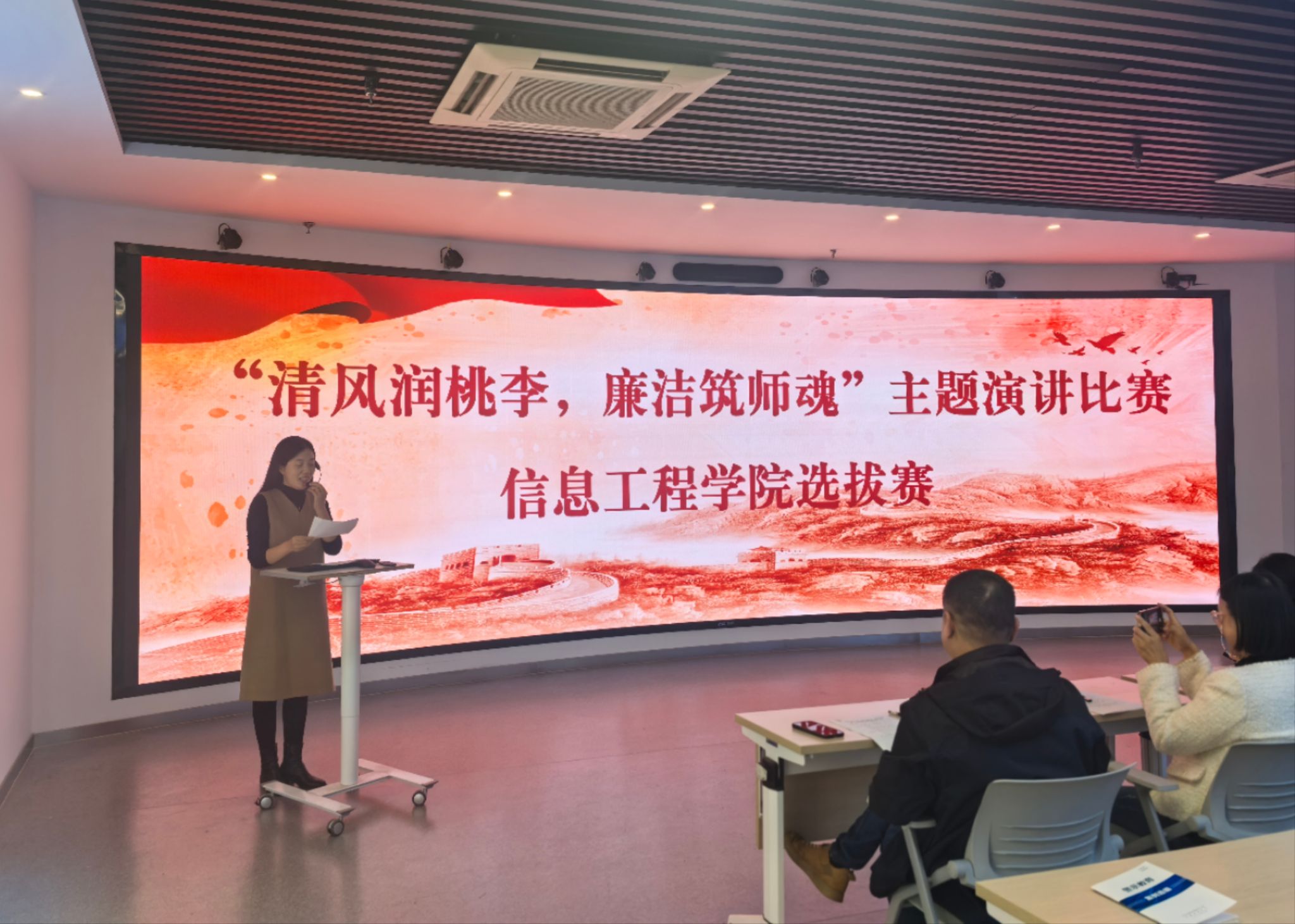 11月13日下午,信息工程学院在综合楼VR实训室举办“清风润桃李,廉洁筑师魂”主题演讲比赛。
