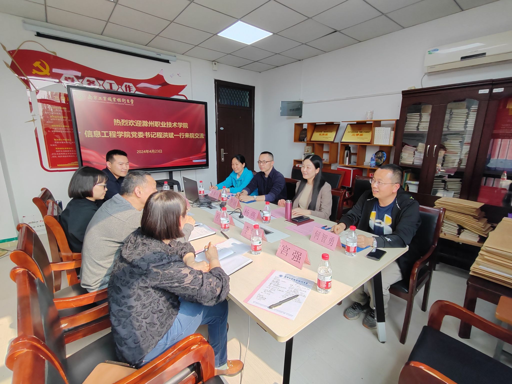 程洪斌一行就物联网专业本科和专科人才培养、国家级产教融合实训基地建设、国家级教学成果奖、国家级精品课程建设、高级人才引进、学院党建和样板支部建设等方面开展交流学习。
