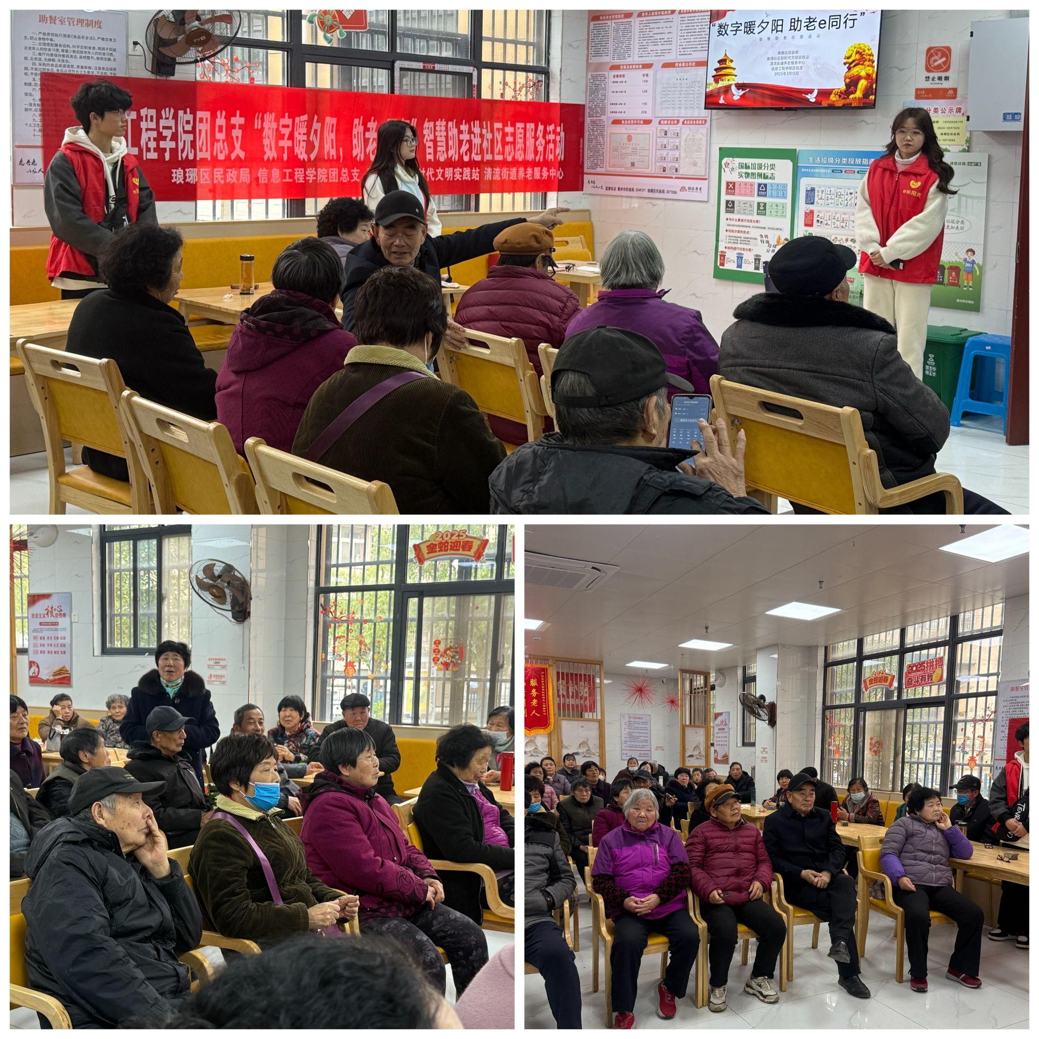 为弘扬雷锋精神,践行志愿服务理念,3月13日,信息工程学院团总支组织学生志愿者走进紫薇社区养老服务站开展“数字暖夕阳,助老e同行”志愿服务活动,帮助社区老年人学习使用智能手机,增强防诈骗意识,乐享智慧生活。