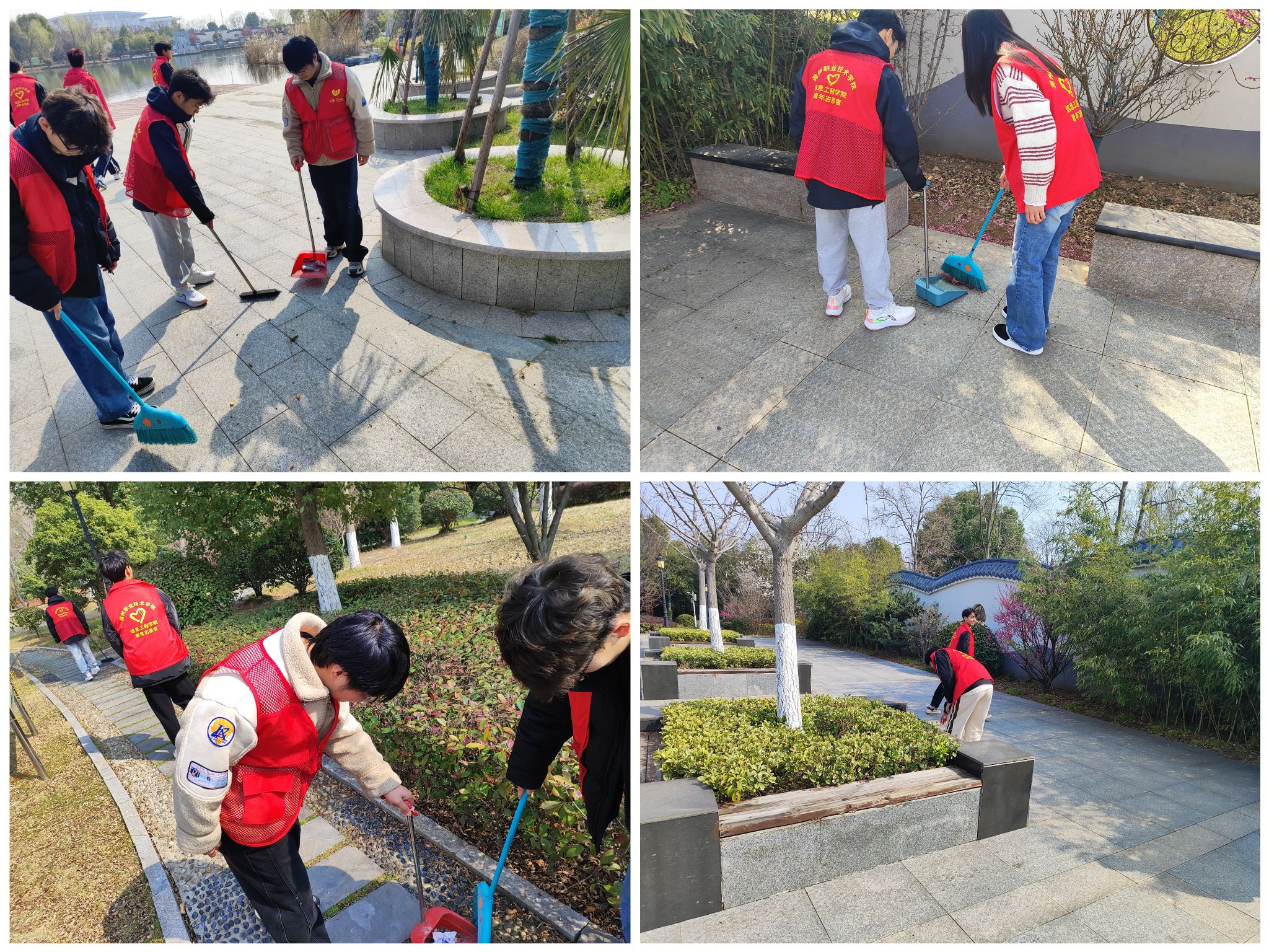 活动期间,团支书带领同学们身着统一的志愿者服装,手持扫帚、垃圾袋等工具热情高涨地投入到清洁环境中。他们分工合作,有的负责清扫石径的落叶和杂物,有的专注于清理园内的垃圾,还有的在校园周边捡拾路边的废弃物。同学们不怕脏、不怕累,用实际行动诠释着雷锋精神,也激励着更多同学将雷锋精神融入日常生活,从点滴小事做起,传递爱心与正能量。