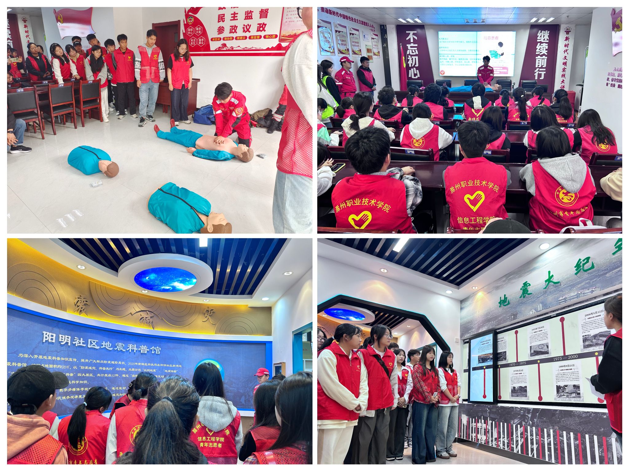 为提高同学们的防灾知识和意识,10月13日,信息工程学院志愿者小队积极响应滁州市青年志愿者协会的号召,前往南谯区尚城国际小区和阳明社区防灾减灾馆开展“防震减灾”志愿服务活动。