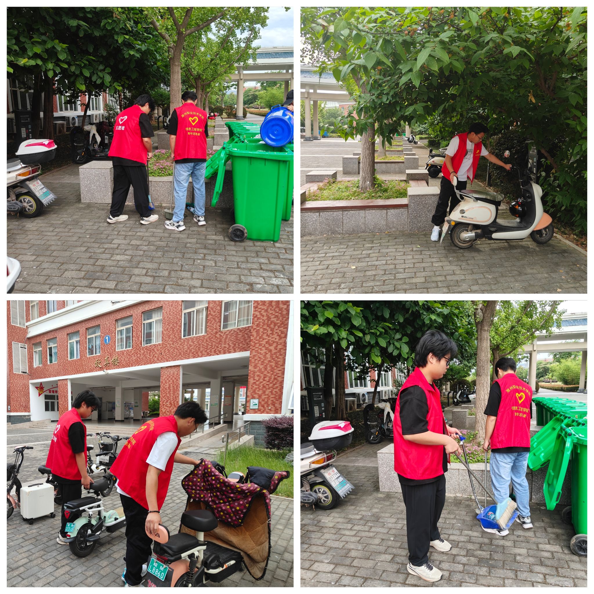 “青春正能量,端午校园行”校园志愿清扫活动。6月7日,我院学生会组织学生志愿者在2号楼下开展电动车摆放、清扫校园等活动,志愿者们忙碌的身影穿梭在教学楼下,用实际行动践行劳动最光荣的理念,弘扬社会主义核心价值观。