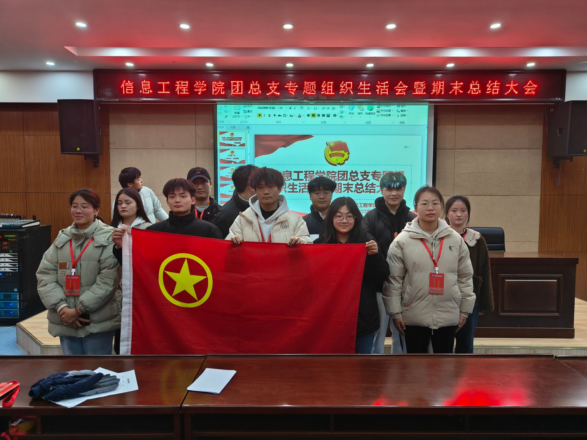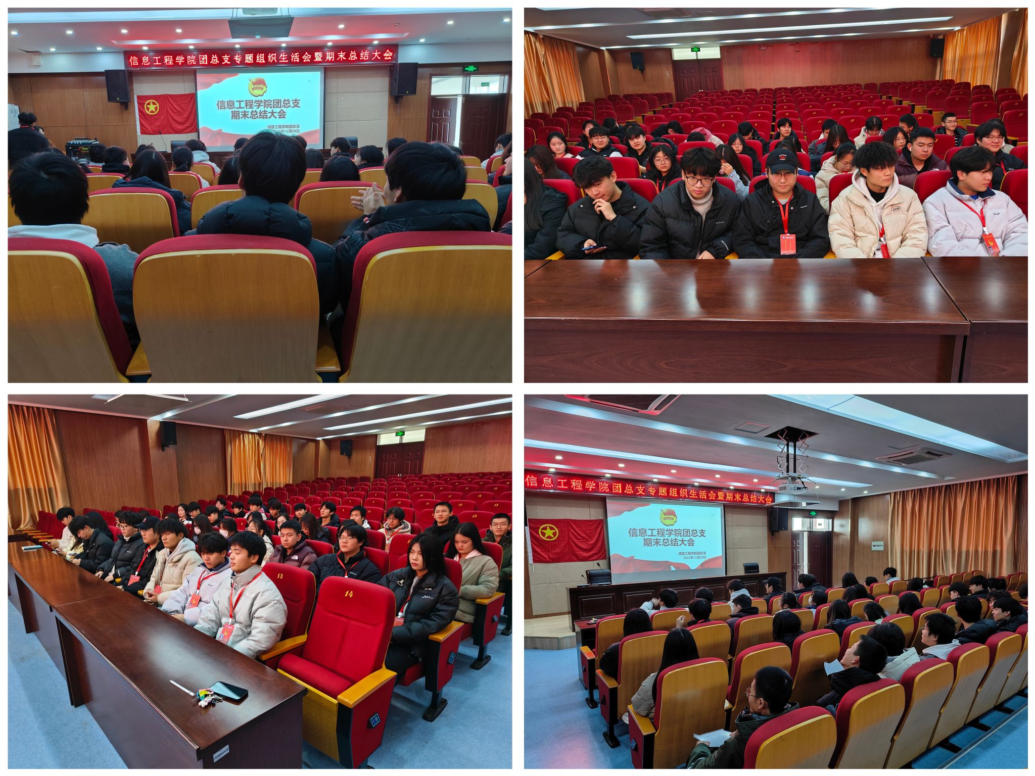 为不断把学习贯彻习近平新时代中国特色社会主义思想引向深入,加强对共青团员的政治锻造,同时总结本学期的各项工作,2023年12月28日,信息工程学院团总支在南阶205教室开展了专题组织生活会暨期末总结大会。团总支所有团干、各班团支部书记参加会议,会议由宣传部干事徐诗嘉主持。
