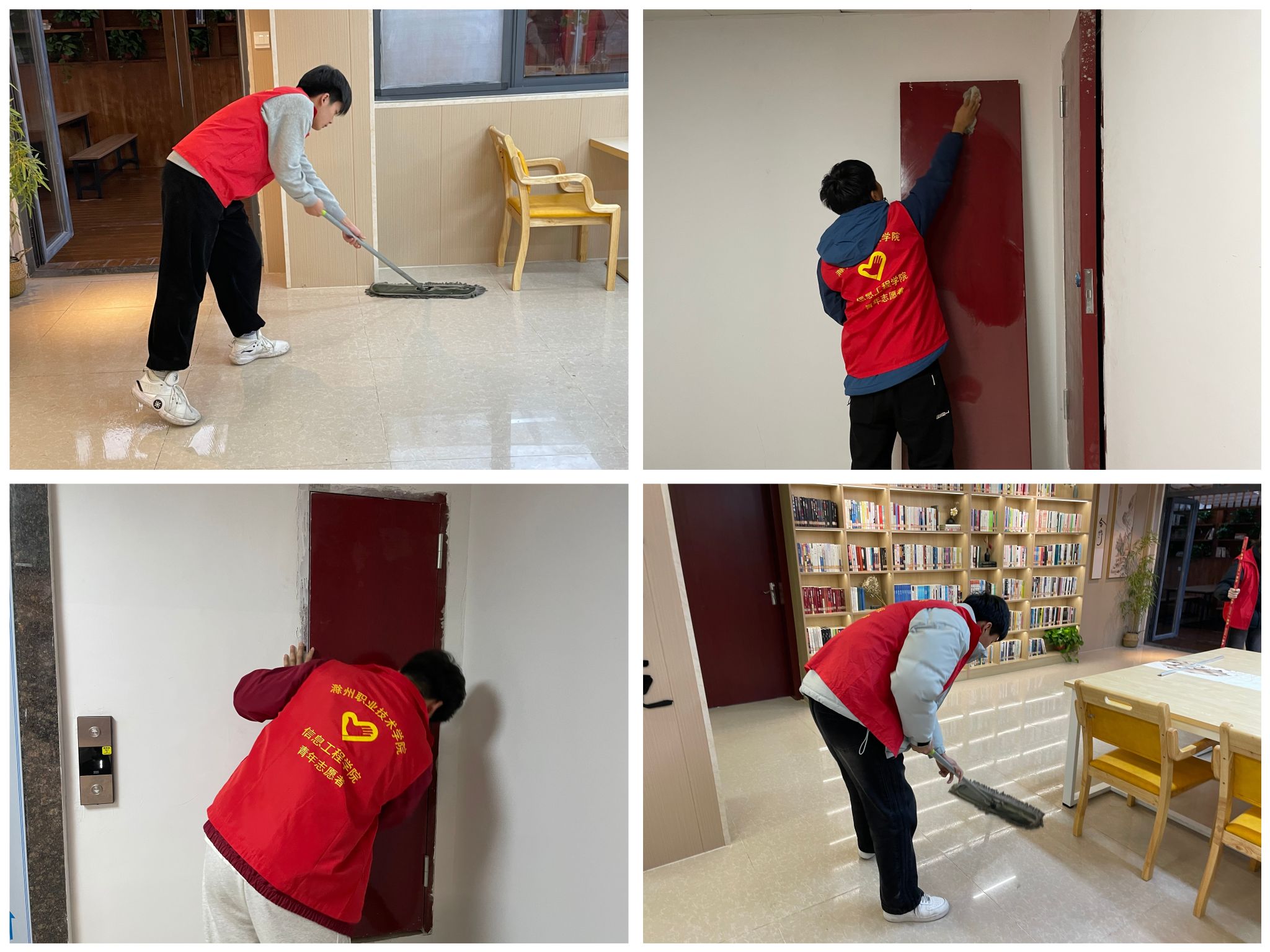 活动中,同学们积极参与,在社区服务中心集合,在社区工作人员的安排下,同学们以小组为单位合理分工,有的负责整理图书,有的负责打扫卫生,有的负责清理社区的绿化区域,大家配合默契,现场气氛活跃而有序。