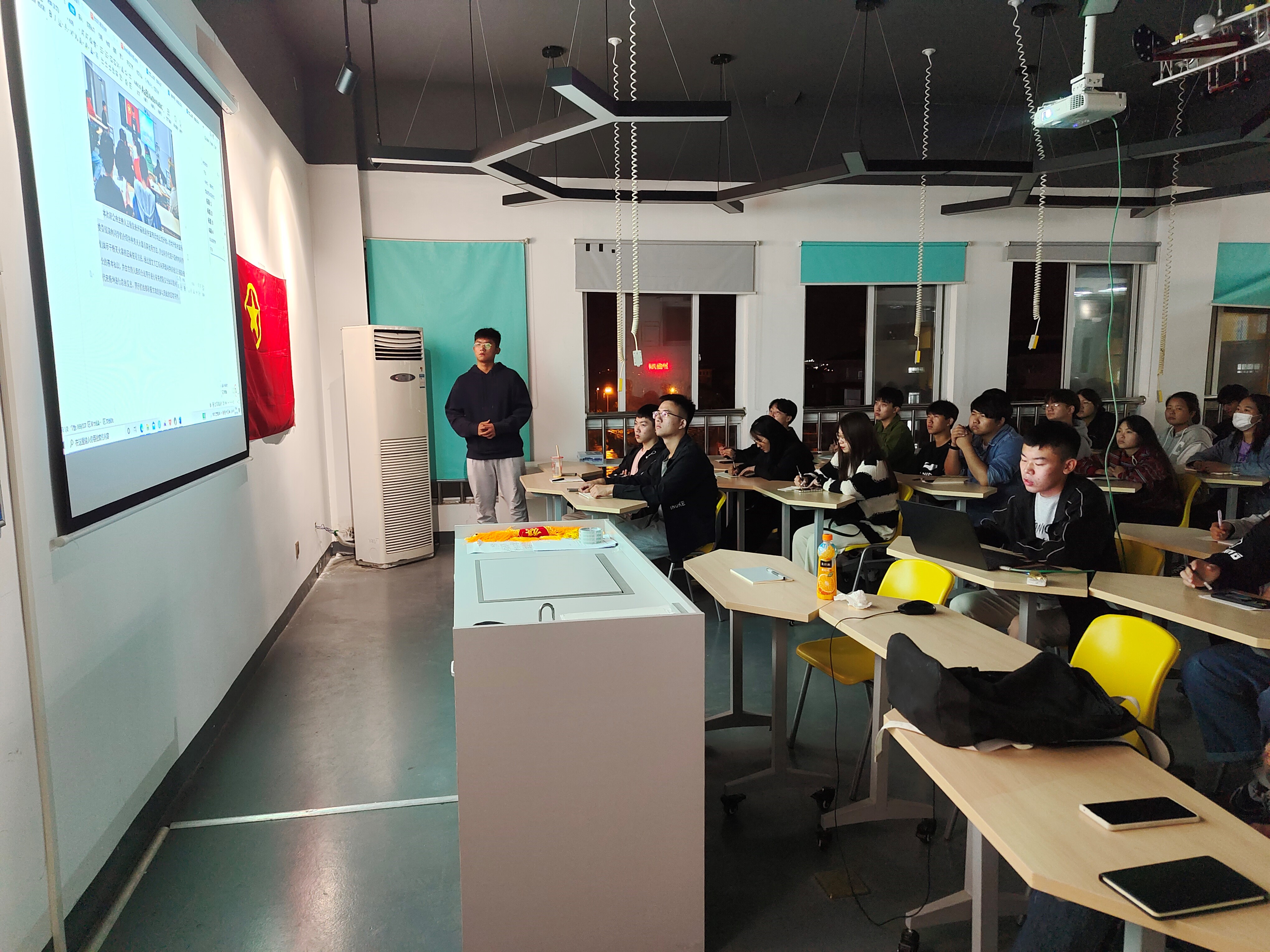 活动一开始,宣传部部长王博以优秀的新闻稿为范文对新闻稿撰写和活动照片拍摄进行了详细讲解。随后组织部部长朱祥雨用PPT和视频形式围绕团关系转入、新团员发展流程介绍、“智慧团建”系统介绍和“智慧团建”转入进行了详细讲解。之后组织部副部长朱仁杰补充说明了主题团日活动策划书的相关注意事项,如格式、内容以及措词等,并指导新生团干部具体的操作流程。最后,团总支副书记王乐给参加培训的共青团工作者讲解了“三会两制一课”的具体内容,并规范了团支部手册的书写要求,旨在帮助共青团工作者们更好的熟悉团总支和团支部的工作,有效地提高工作效率。