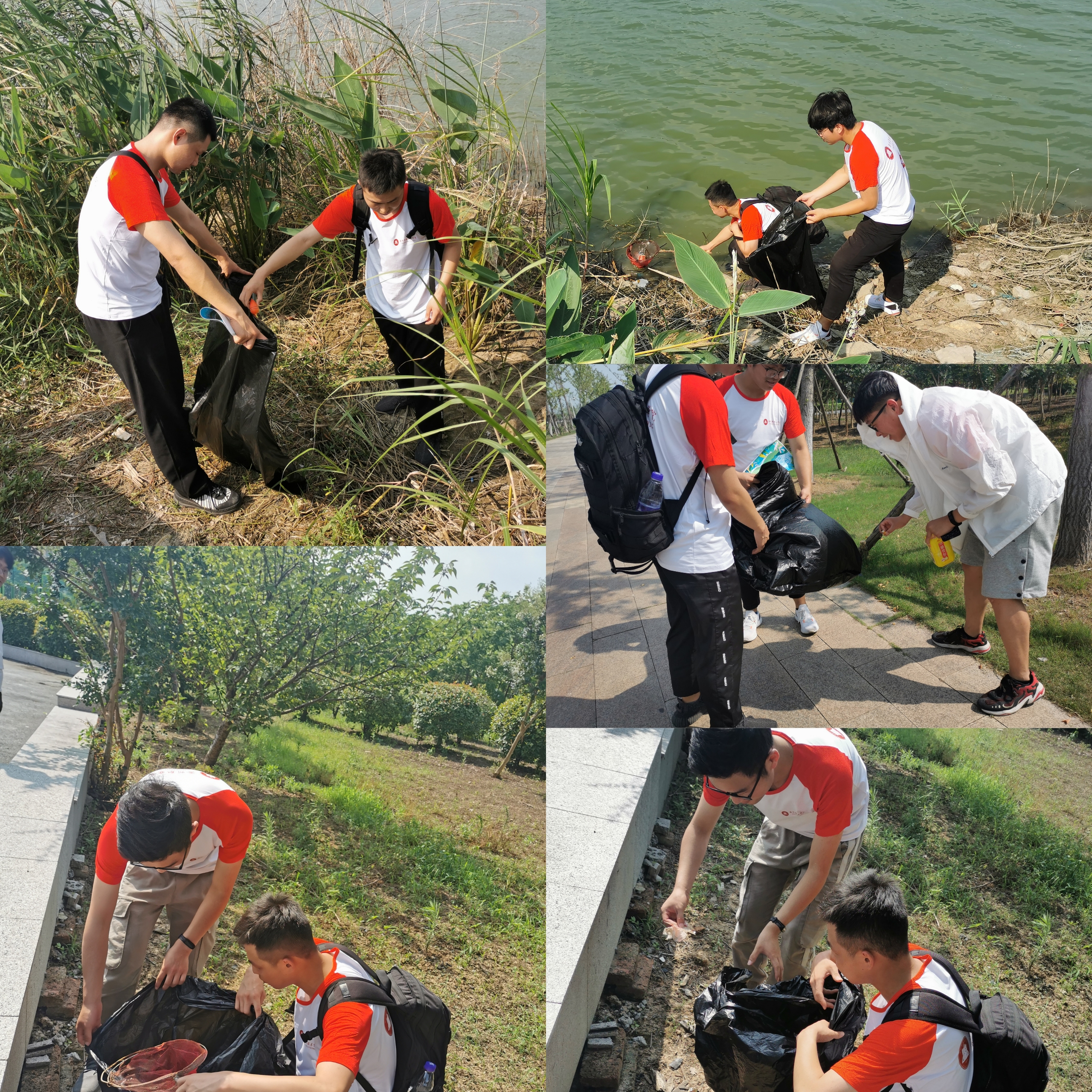 在前往清流河的路途中,朱睿老师给同学们讲解了清流河的情况,并科普了很多环保知识。实践团成员到达清流河后,便拿出带的垃圾袋等自动分组,分别捡拾河边和公园内的垃圾,市民路过纷纷投来赞许的目光。