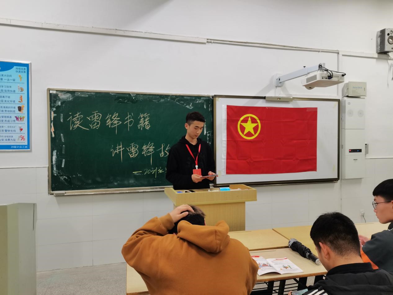 活动中,在各班团支书的带领,班级团员青年积极参与下,每位同学通过阅读雷锋故事的书籍娓娓道来雷锋事迹以及自己身边的雷锋故事,让同学们更深入的了解雷锋身上的精神与品质。同学们说的每一个故事都让参加的同学感动、学习,同时也是在思想上的一次洗礼,进一步加深同学们对雷锋精神的了解认识,感受到了“人的生命是有限的,可为人民服务是无限的,要把有限的生命投入到为人民服务中去”的真正含义。正如诗人贺敬之所说“雷锋”二字并不仅指向一个人,而是整个时代精神的姓名。雷锋是一个时代的印记,深深的烙进中国人的心里。