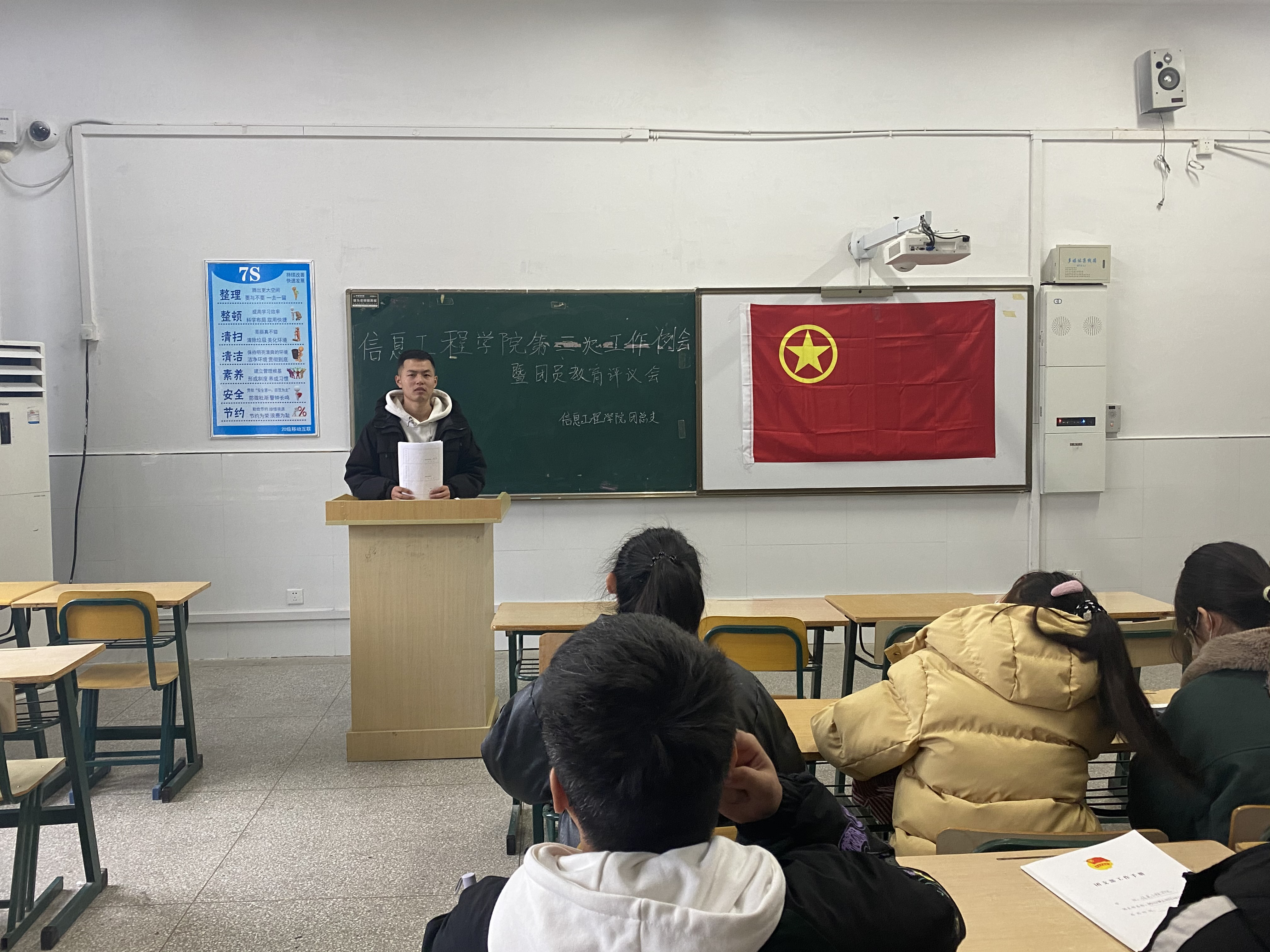 为提高支部成员的团员意识,认真落实从严治团各项规定,加强团组织建设,信息工程学院团总支于在12月29日中午在致善楼2506教室召开了第二次工作例会暨团员教育评议会,本次评议会由副书记张清主持,团总支全体共青团工作者们参加。