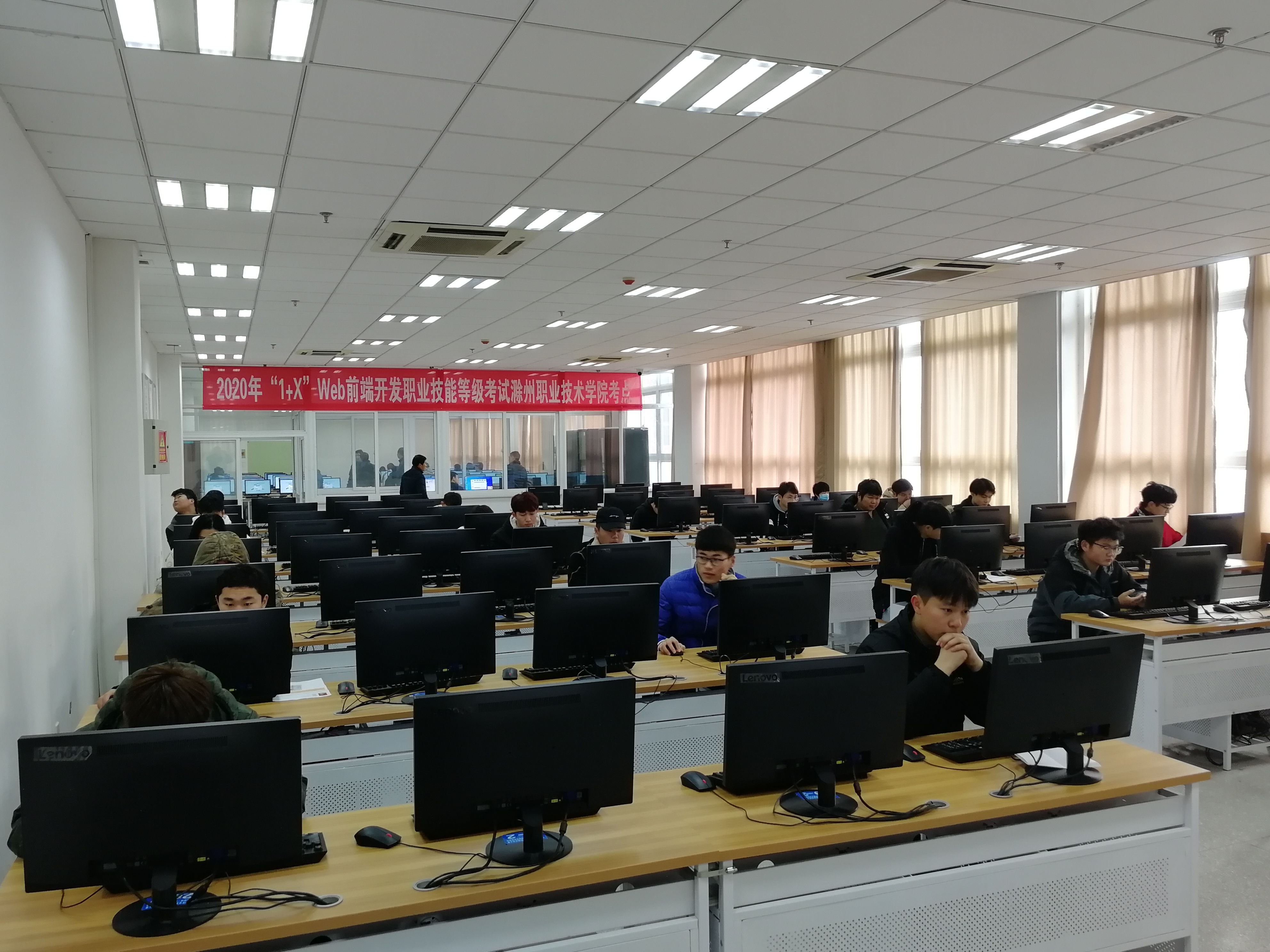 作为“1+X”Web前端开发职业技能等级证书制度试点院校,我院以“1+X”证书制度试点工作为抓手,进一步深化人才培养方案改革,初步构建基于“课证融通”的课程体系,稳步推进“1+X”职业技能等级证书认证考核工作。信息工程学院软件工程系、实训中心教师积极参与学生培训及考务工作,克服了认证考试准备时间短、教学考试配套资源筹备紧张等困难,圆满完成各项工作。