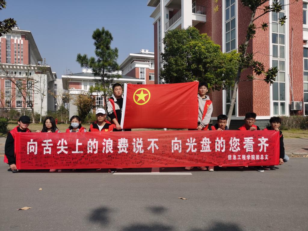 为进一步弘扬中华民族勤俭节约传统美德,在同学们心中树立节约光荣、浪费可耻的思想观念,让厉行节约、反对浪费的观念在校园内蔚然成风。信息工程学院团总支于11月8日在校内举办“厉行节约,反对浪费”主题签名活动,在校同学踊跃签名参与活动。