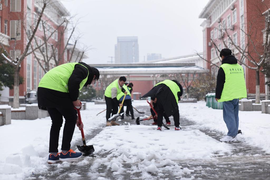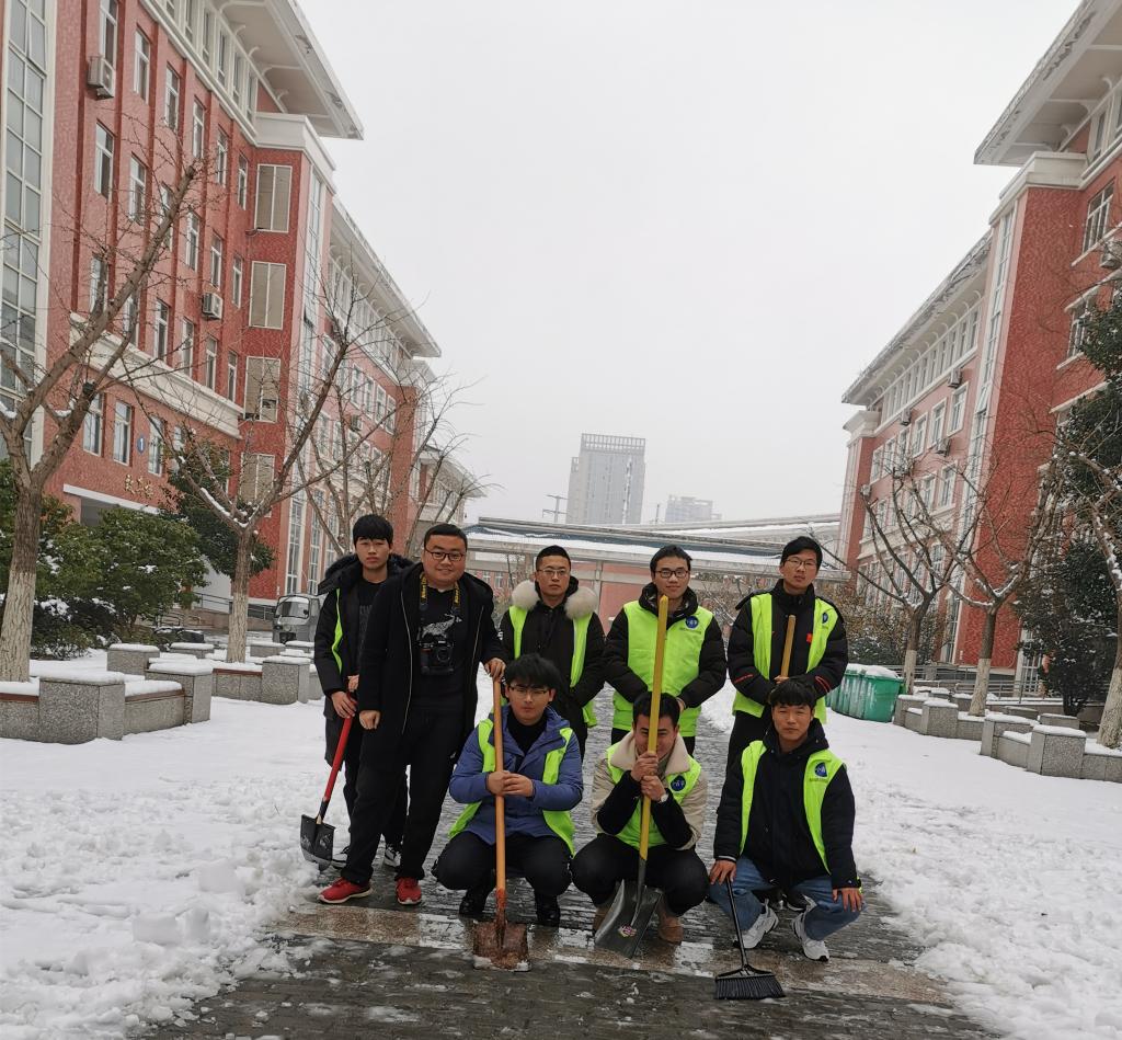 忽如一夜春风来,千树万树梨花开。纷纷扬扬的白雪虽然装扮了我们的校园,但厚厚的积雪也给师生的出行带来诸多不便,埋下了安全隐患。为了保障师生顺利出行和车辆通行安全,信息工程学院响应校团委号召,于1月9日积极组织志愿者开展校园扫雪活动。