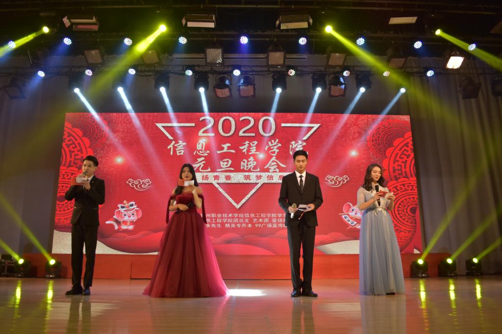 为了庆祝元旦佳节、丰富校园文化。12月22日晚,由信息工程学院主办的“飞扬青春,筑梦信息”大型元旦晚会在院大礼堂华丽上演。我院党总支书记程洪斌、党总支副书记杨阳、副院长邹军国等各位领导老师出席此次晚会并与我院学生会主席、团总支副书记及全体干事、各院学生带着对新一年的美好憧憬,共度良宵。