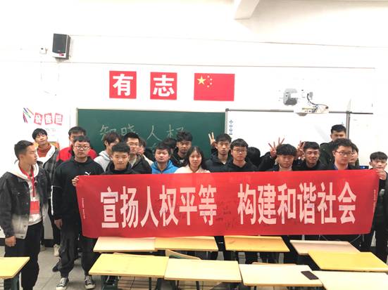 活动开始,同学们参加活动的积极性很高,由主持人介绍人权日的来历及意义。活动进行时,同学们普遍对人权这一问题抱有很大的兴趣,团支书耐心地为大家讲解有关人权知识的故事。中华人民共和国自1971年10月25日恢复了在联合国和安理会中被非法剥夺了20多年的席位以来,随着经济文化高速发展的同时,人权维护方面也有很大提升。