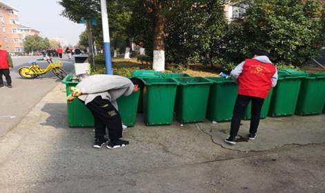 活动中,同学们秉着一丝不苟的态度,分工合作,对教学楼下垃圾桶外的垃圾进行整理,摆放教学楼和宿舍楼下的电动车和自行车,还有其他力所能及的各类清扫,经过一个小时的辛勤劳作,校园内焕然一新。