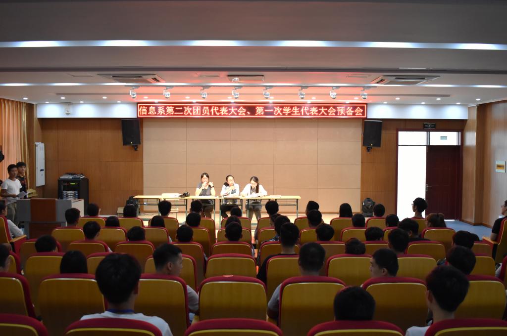 2018年9月18日中午,awc777万象城娱乐官网信息工程系顺利召开第二次团员代表大会、第一次学生代表大会预备会。我系相关老师、团代会代表、学代会代表、筹委会以及工作人员参加了会议。