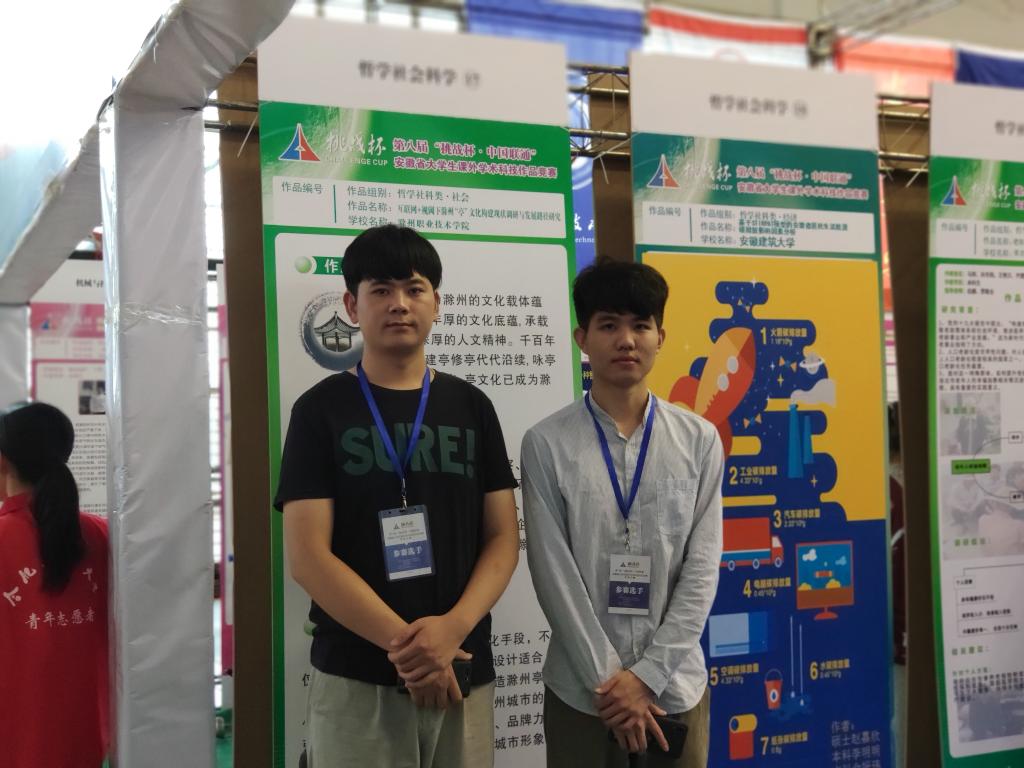 5月25日—27日,安徽省第八届“挑战杯”大学生课外学术科技作品竞赛终审决赛在合肥工业大学翡翠湖校区举行。信息工程系张莉萍、许响、王益民、陈海飞同学的集体作品《互联网+视阈下滁州“亭”文化构建现状调研与发展路径研究》入围终审决赛,经过现场答辩,最终荣获哲学社科类调研报告和学术论文类二等奖,取得了awc官网学子征战“挑战杯”竞赛本类别的最好成绩。