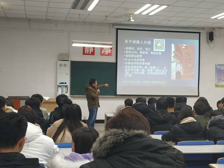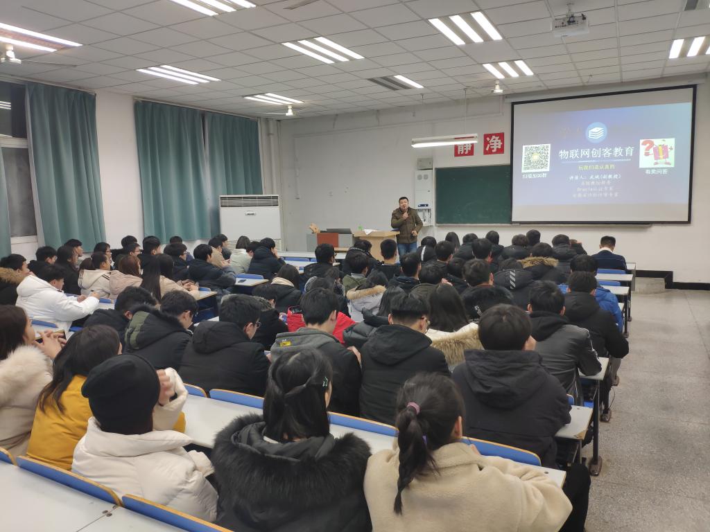 12月27日晚,信息工程系物联网教研室在北阶102教室举办了题为《物联网创客教育》学术讲座。讲座由物联网教研室主任李兰兰主持,副教授武斌主讲,校大学生科学与技术协会和信息系学生会协办。物联网专业的同学、大学生科学与技术协会成员和信息系学生会代表共120余名同学参加了本次学术讲座。