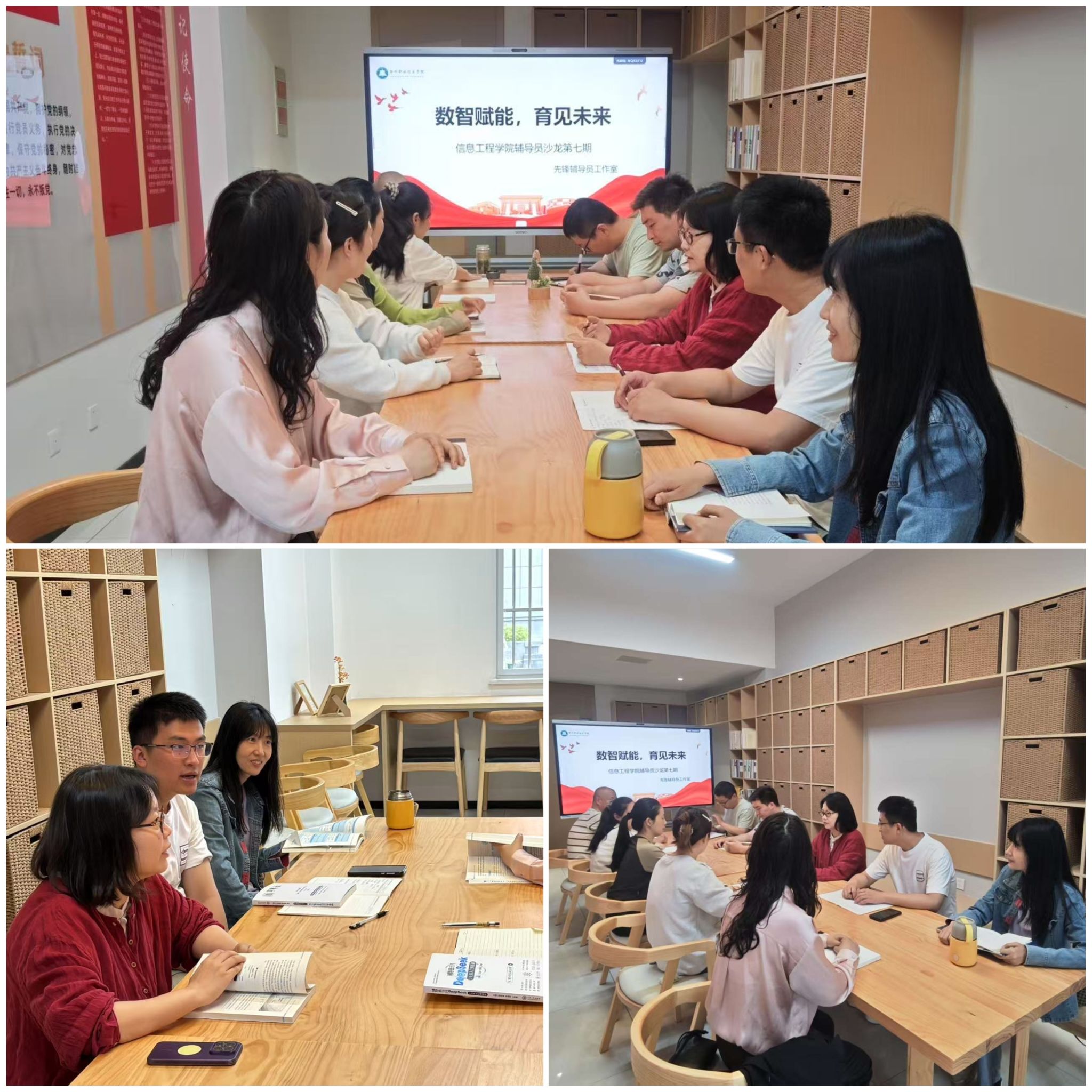 5月15日,信息工程学院在“一站式”学生社区阳明书院以“数智赋能,育见未来”为主题召开了第七期辅导员工作沙龙,深入探讨人工智能技术在学生工作中的创新应用。学院党总支副书记杨阳主持活动,全体专兼职辅导员参与研讨。