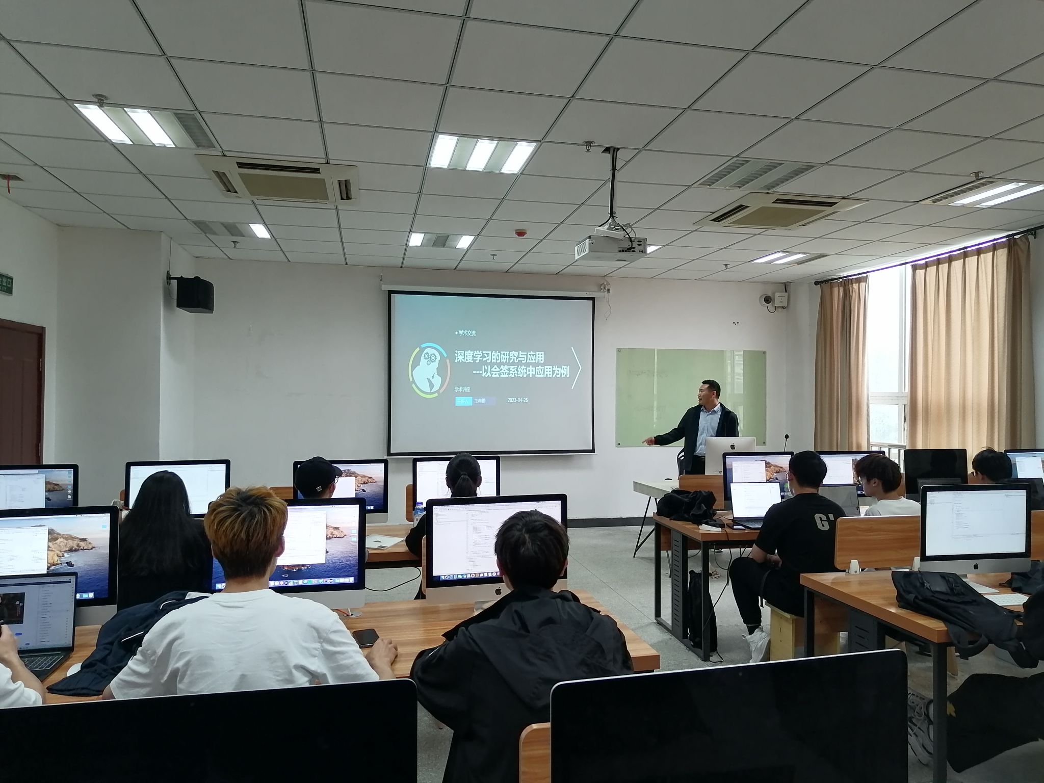 4月26日下午,信息工程学院王善勤老师在Z306实验室举办了题为《深度学习的研究与应用--以会签系统中应用为例》的学术讲座,来自awc官网软件技术、计算机应用技术、移动互联应用技术等专业同学聆听了讲座。