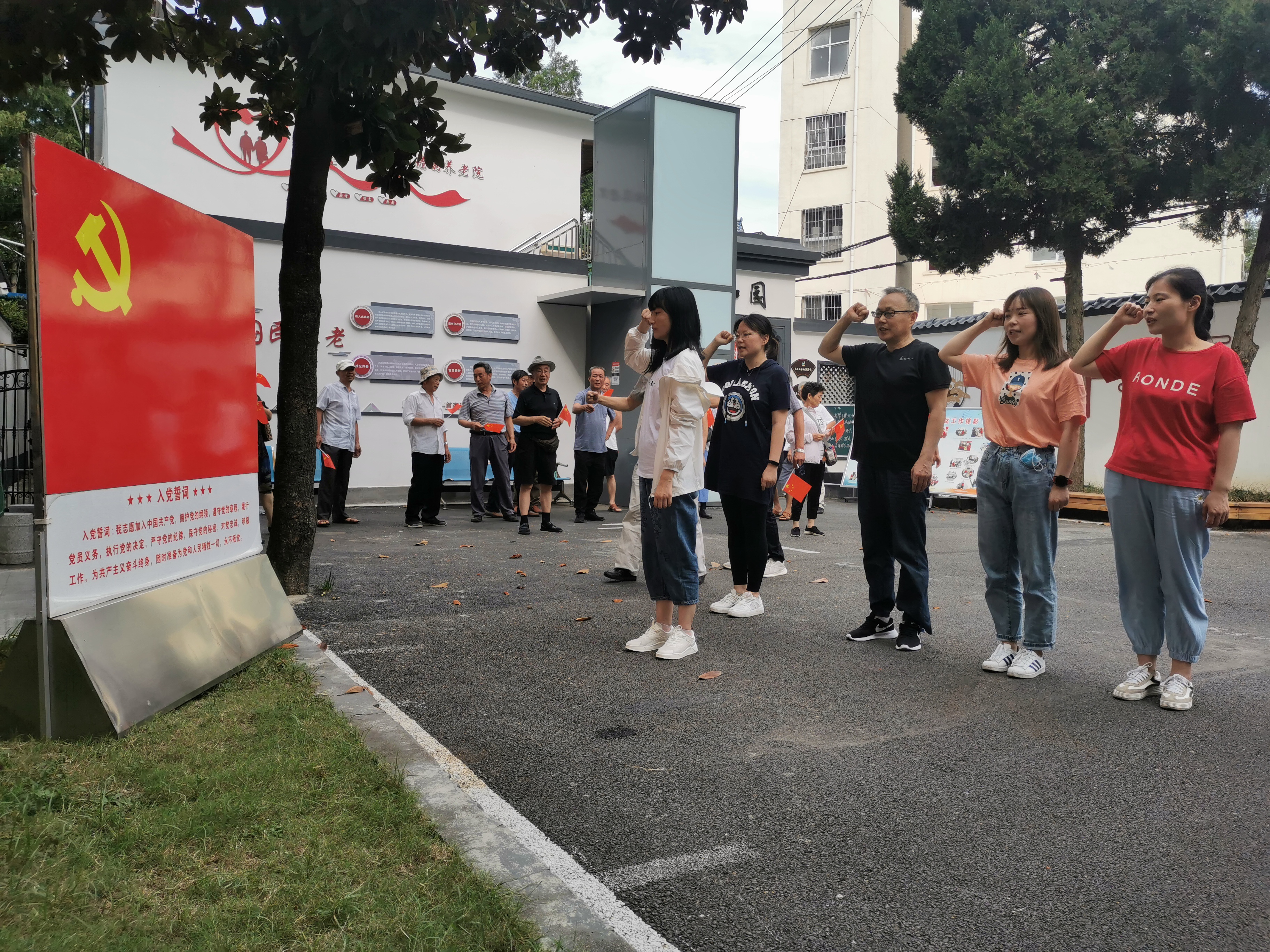 参观结束后,全体党员教师紧握右拳,面对鲜红的党旗,庄严地重温了入党誓词。