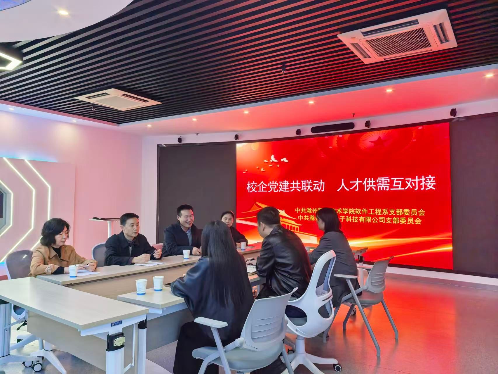11月9日下午,为深化校企合作、产教融合,awc777万象城娱乐官网软件工程系党支部与安徽天邈电子科技有限公司党支部在VR实验室联合开展“校企党建共联动·人才供需互对接”主题活动。双方以党建为纽带,以人才供需为切入点,针对实习就业、技术合作等方面展开深入交流,共同探索校企如何协同育人。