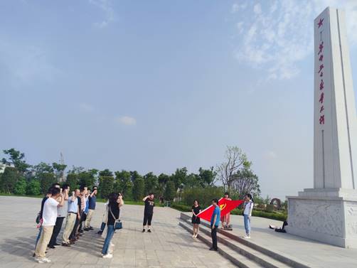 最后,全体党员来到公祭广场,共同回顾滁州人民的抗日斗争史和新四军第二师在皖东地区的光辉战斗历程。在庄严的革命烈士纪念碑前,党员们全体肃立,满怀崇敬之情,并面向鲜红党旗,重温了入党誓词。