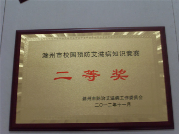 滁州市校园预防艾滋病知识竞赛二等奖