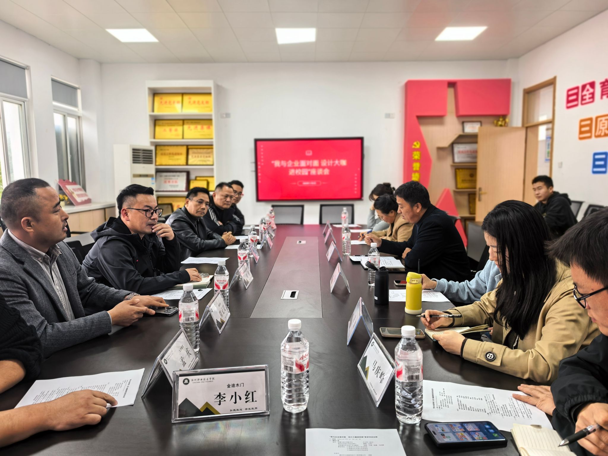 在专业负责人黄瑞的主持下,与会教师与企业代表围绕“2025年就业形势与实习安排”这一核心议题展开深度对话。企业代表们结合行业动态与企业实际,分析了后疫情时代装饰设计行业的发展趋势和人才需求变化。久烁装饰设计有限公司的人事经理指出:“当前市场对设计师的要求已从单纯的技术执行向综合能力转变,我们需要的是既懂设计美学,又了解材料工艺,还具备客户沟通和项目管理能力的复合型人才。”与会教师则从人才培养方案、课程设置角度出发,探讨了如何将行业最新标准融入教学实践。双方还就建立“校企双导师制”、共同开发实践课程、优化实习考核机制等具体合作事项交换了意见,初步形成了“校企协同、共育英才”的共识。座谈结束后,全体参会人员在德馨楼前合影留念,记录下这一富有意义的时刻。