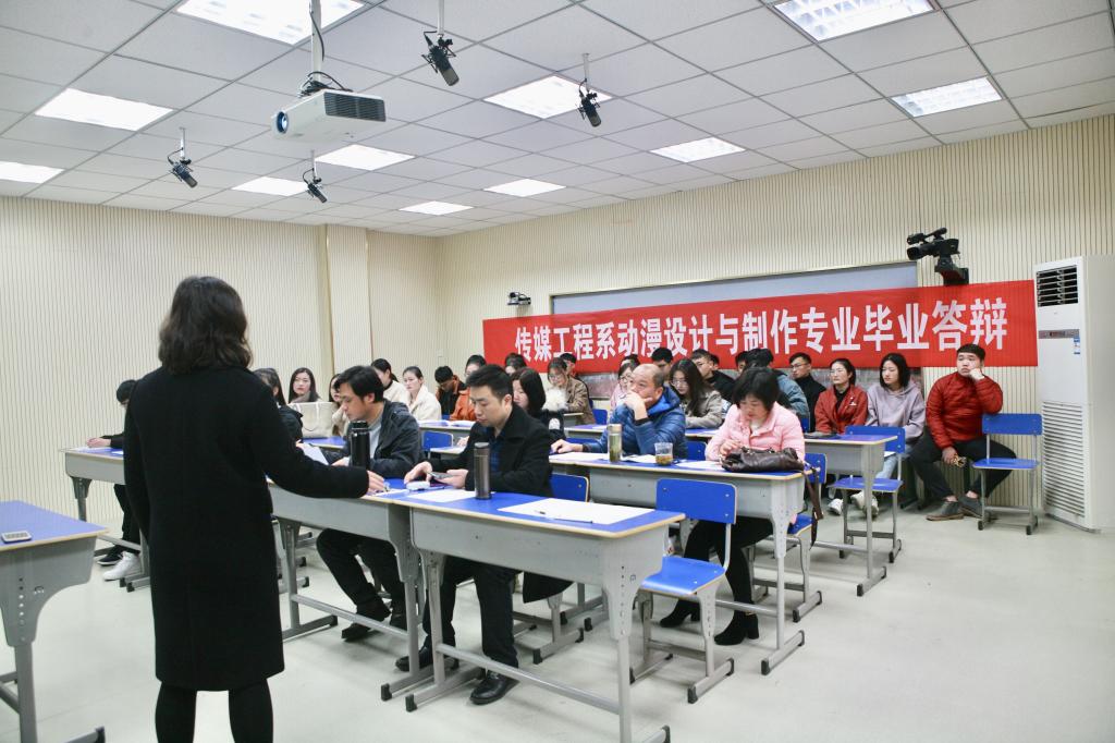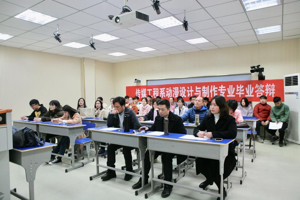 近日,传媒工程系动漫设计制作专业毕业生答辩工作在该校德馨楼206教室展开,答辩评委老师及全体19届毕业生100人参加本次答辩。本次毕业答辩工作由动画教研室主任范文娟主持,教研室老师水浩、尚彩云、周苏亭、周勇、于雯雯担任答辩评委。