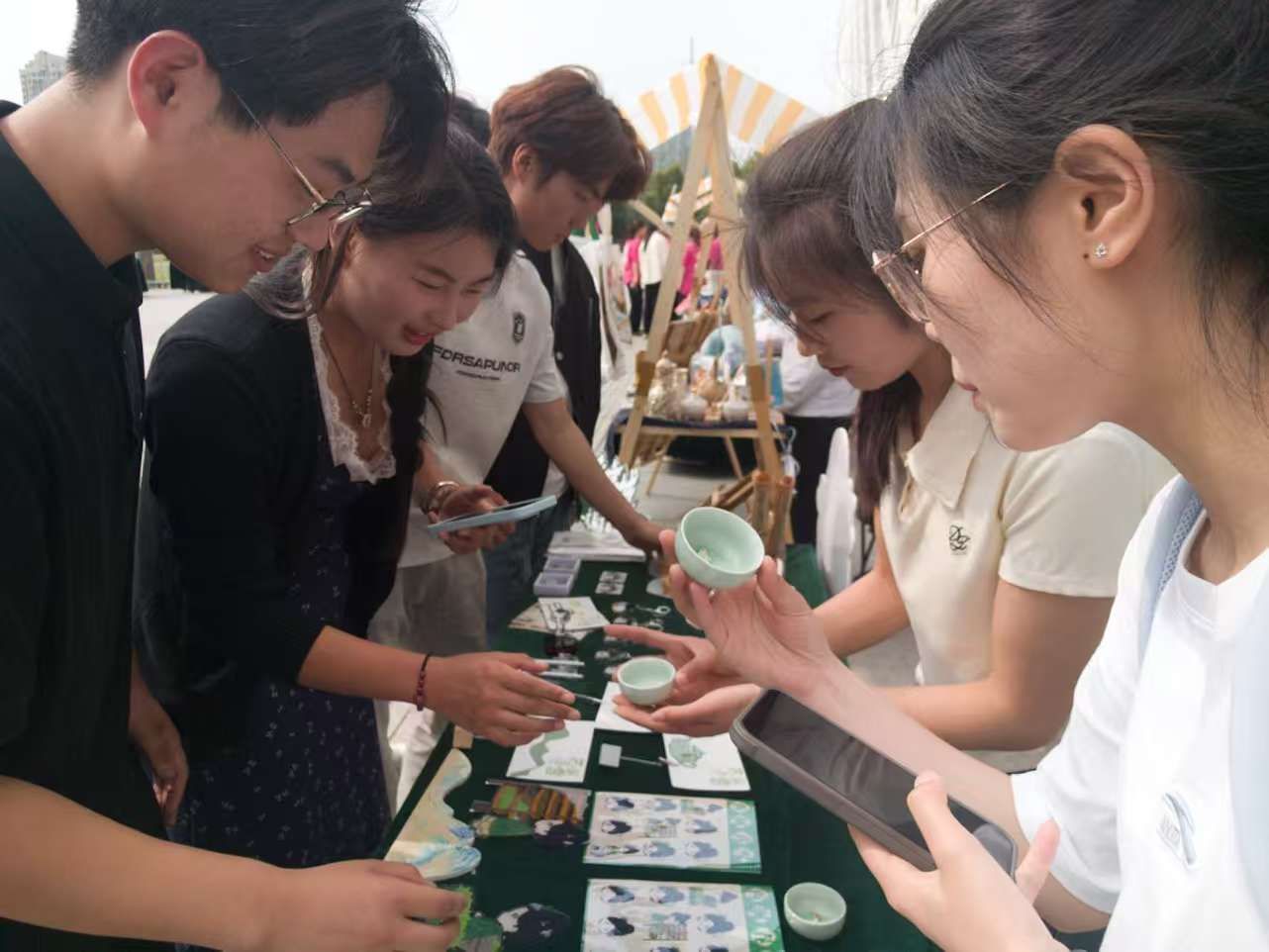 团市委书记、市直相关部门领导参观市集,聆听文创讲解,了解产品背后所蕴含的文化内涵,同awc官网学子亲切交流,并予以好评。本次文创市集引起众多群众驻足围观,市民朋友们对文创产品表现出极大兴趣,经awc官网学子介绍后更是爱不释手。