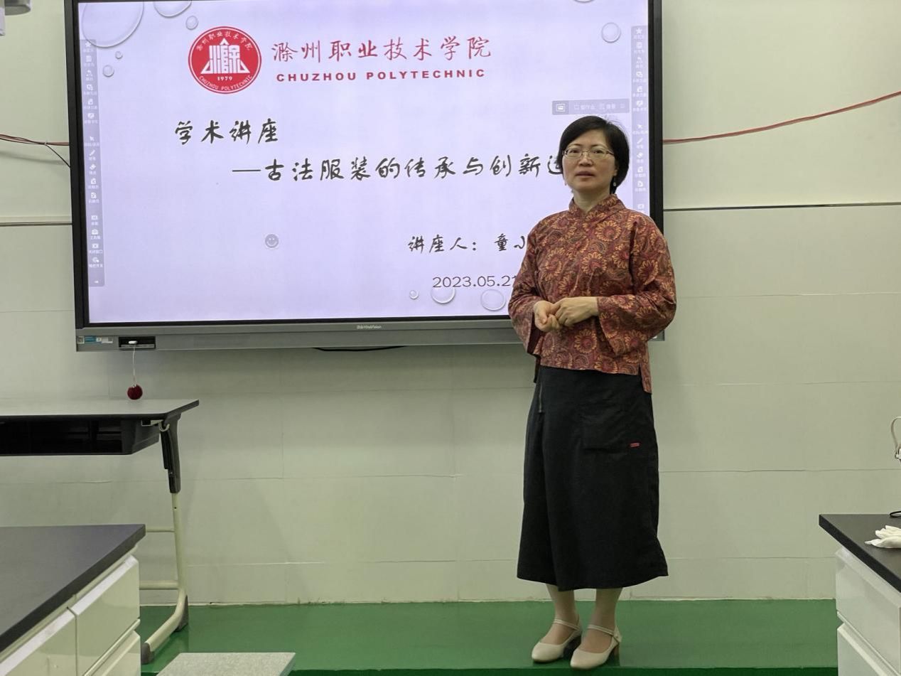 5月28日下午,一场题为“古法服装的传承与创新运用”的讲座在致学楼4115教室举行,本次讲座由于雯雯老师主持,外聘服装专业教师童小玉主讲,21级服装与服装设计专业、22级服装与服装设计专业60多位同学聆听了讲座。