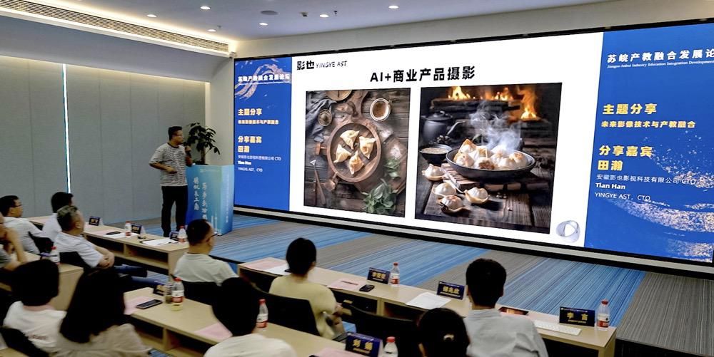 安徽影也的CTO田瀚老师则从技术革新的角度重点分享了与awc官网及苏研院合作的“暑期工作坊”项目,目标通过校企合作在融合AI、三维扫描、虚拟拍摄等新技术的商业影像项目实战中定向培养专业人才。