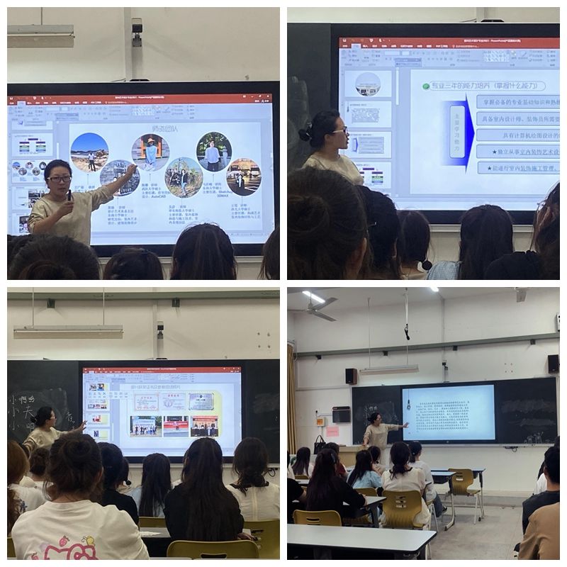 会上,黄瑞老师主要从室内艺术设计专业概况、人才培养模式及特色、师资队伍、人才培养效果、未来行业发展趋势等方面系统地做出了详细介绍,为刚踏入大学校园的新生们解惑答疑。
