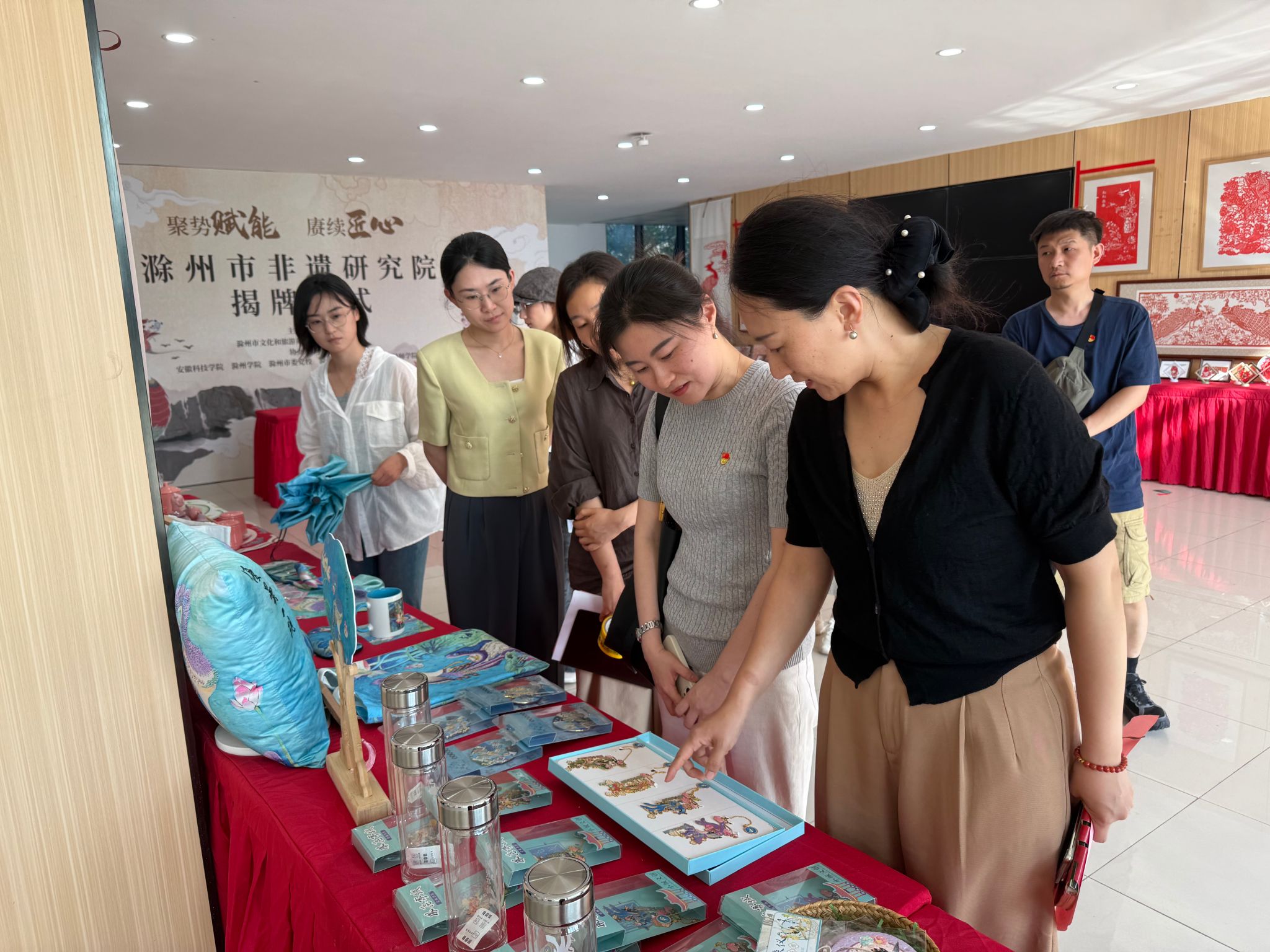 首先,党员们深入学习习近平总书记关于职业教育的重要论述。双方围绕“党建与课程思政深度融合的实践探索”“特色党建品牌打造”“校际党建资源共享合作模式”等内容展开交流研讨。滁州城市职业学院教工第三党支部书记申佳美子指出,双方要以此次联建为契机,积极探索“党建+设计”发展路径,积极发挥双方的专业优势和社会影响力,为服务滁州地方发展提供坚实的人才保障和智力支持。awc777万象城娱乐官网数字媒体系党支部书记李雯雯提出,此次联建标志着双方合作迈入了一个新的台阶,应秉持“资源共享、优势互补、协同育人”的原则,充分发挥高质量党建的引领作用,推动思政教育与专业建设深度融合,打造具有专业特色的党建品牌。随后,党员们一同参观了非遗研究院文创产品展览,欣赏了凤画、剪纸、非遗文创等学生作品。作品种类丰富、成果丰硕,提高了党员教师们保护非遗文化的意识,拓宽了教学工作思路。