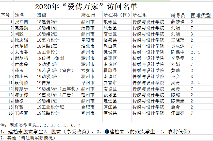 传媒与设计学院2020年爱传万家访问摸排名单公示