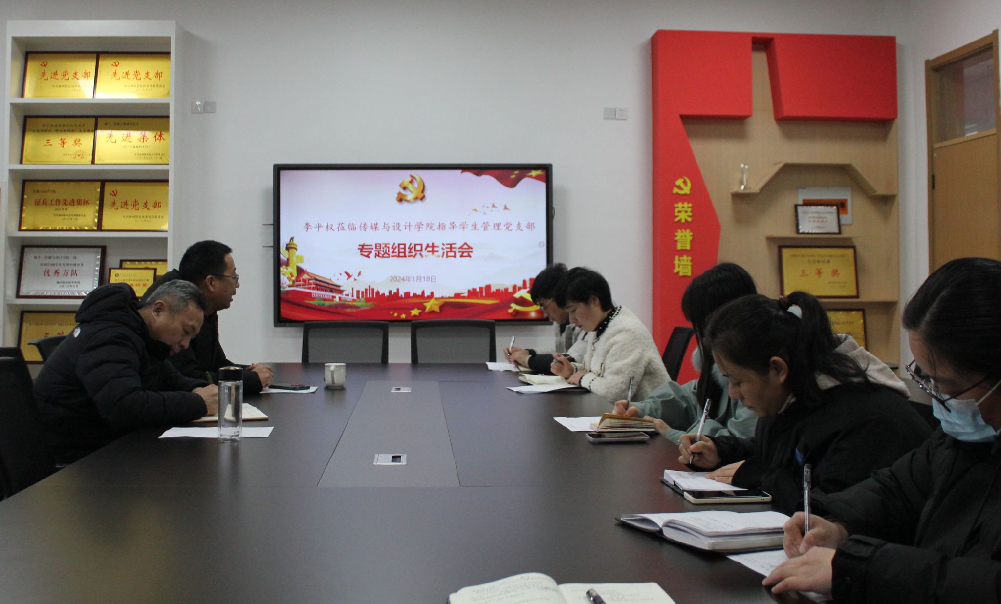 为把学习贯彻习近平新时代中国特色社会主义思想不断引向深入,实现接受政治体检、打扫政治灰尘、净化政治灵魂的目标。1月18日下午,传媒与设计学院学生管理党支部在德馨楼会议室召开专题组织生活会,校党委委员、工会主席李平权列席并指导会议。会议由支部组织委员吴涛主持,支部全体党员参加会议。