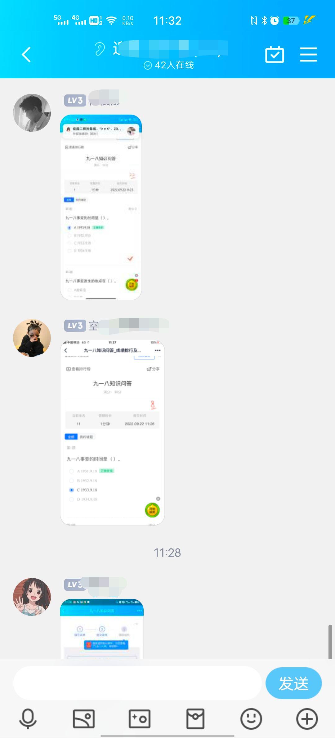 答题活动开始后,各班级团支部积极响应,通过QQ、微信平台发布相关历史知识和“九一八”事变相关问题,在学生群体中营造了学习党史的浓厚氛围。学生们参与热情高涨,积极答题,大家纷纷表示,通过竞答,进一步学习了党史,发现了学习的“盲区”和不足,有效地激励自己深化中国近代史学习教育内容,使党史学习与自身行动相统一。