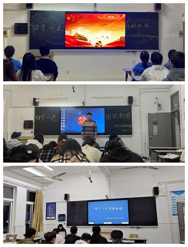 青春、奋斗是当代中国青年的时代风采,也是前进中的青年学子最动人的旋律。传媒与设计学院团总支于11月8日开展“四个一”团员教育主题活动之团歌教唱,本次活动由团支部组织各班团员青年积极开展。