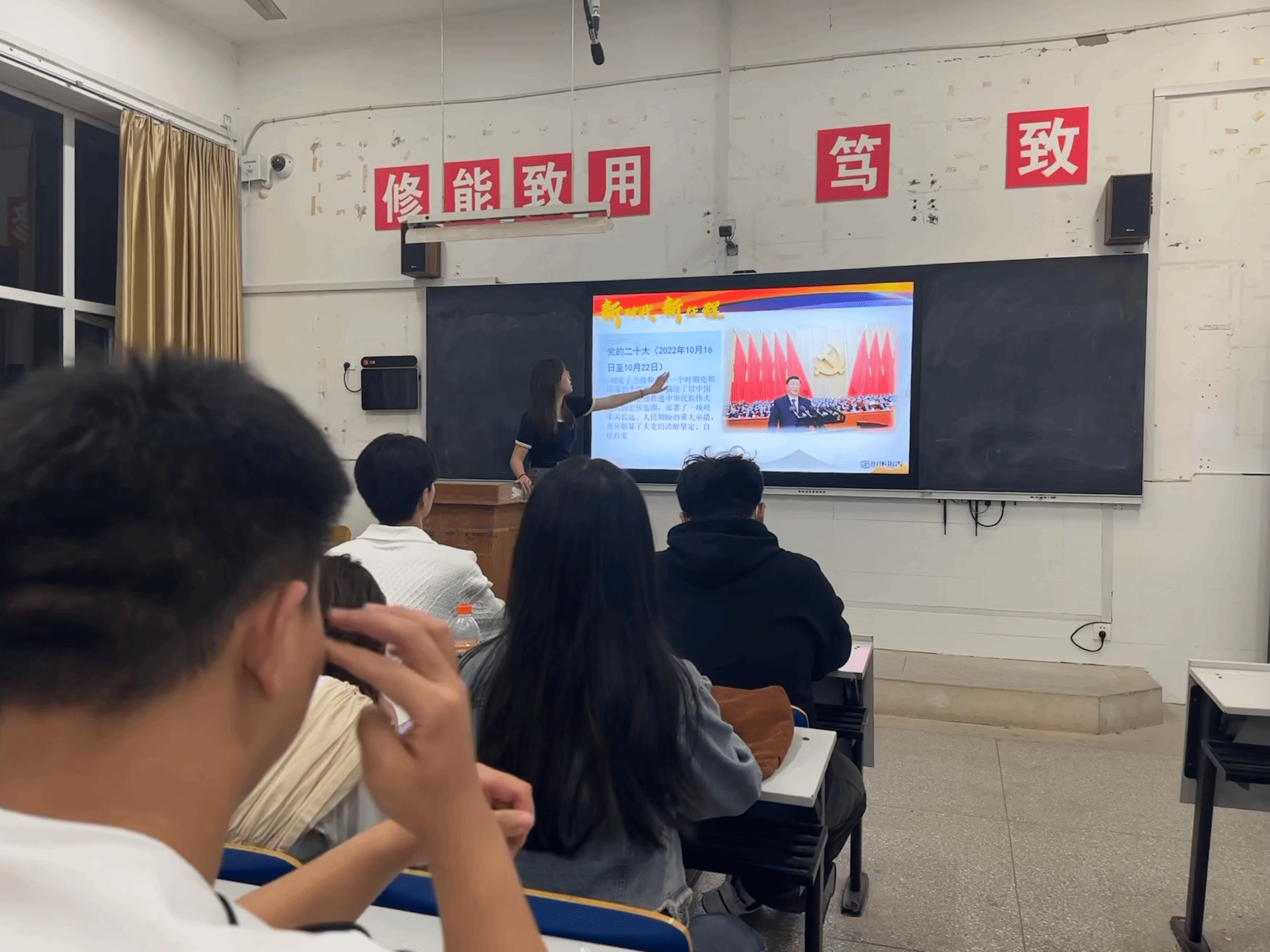 团课主要围绕深入学习中国共产主义青年团历史和新时代青年思政课两大部分。首先唐自彩带领大家重温了百年团史,教育同学们要勤奋上进、踔厉奋发,弘扬五四精神,要始终坚持以习近平新时代中国特色社会主义思想为指导,坚定正确的政治方向,弘扬和培养以爱国主义为核心的团结统一、爱好和平、勤劳勇敢、自强不息的民族精神,继承和发扬观苦奋斗、努力拼搏,勇于创造的优良传统和作风。