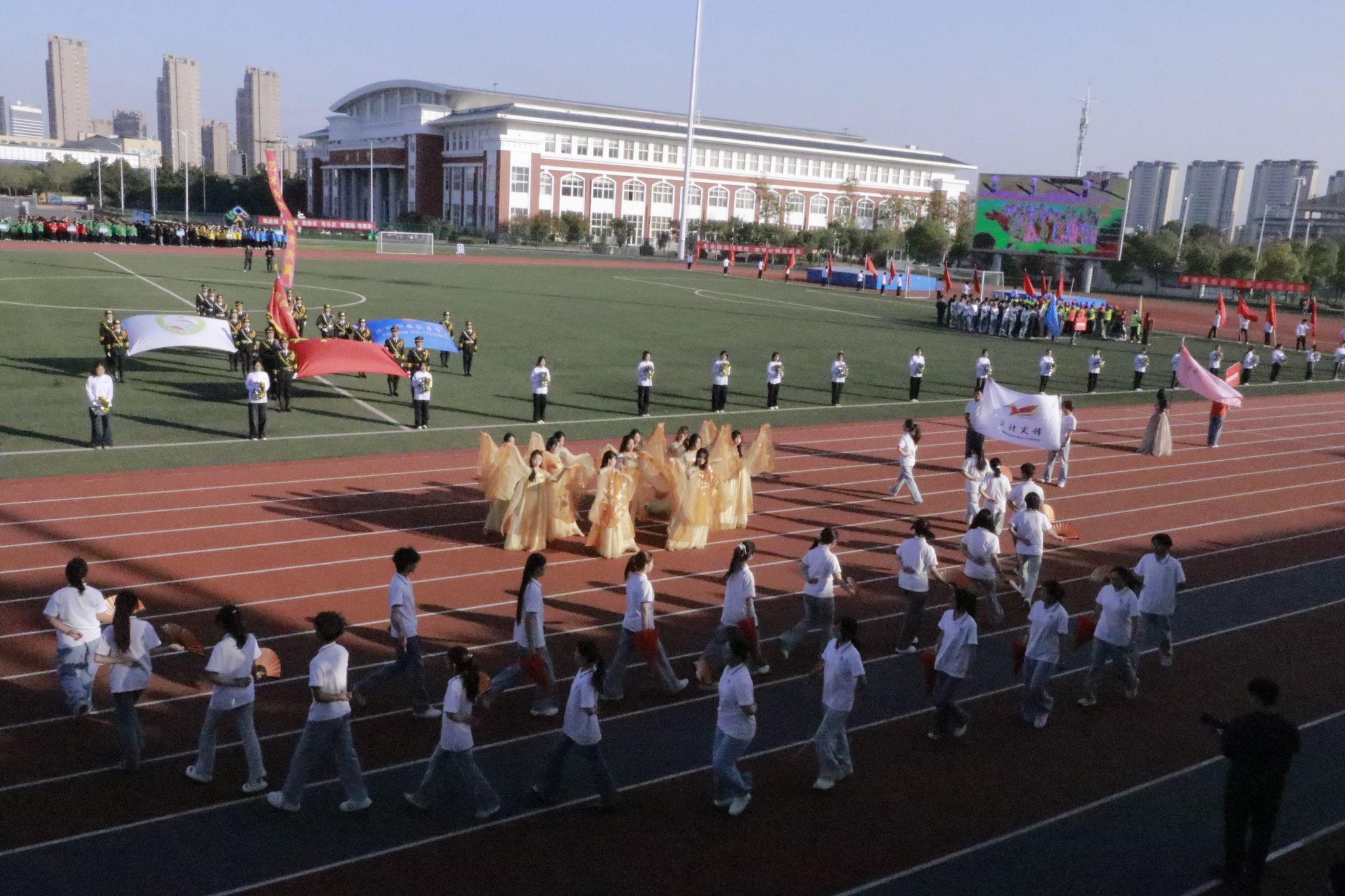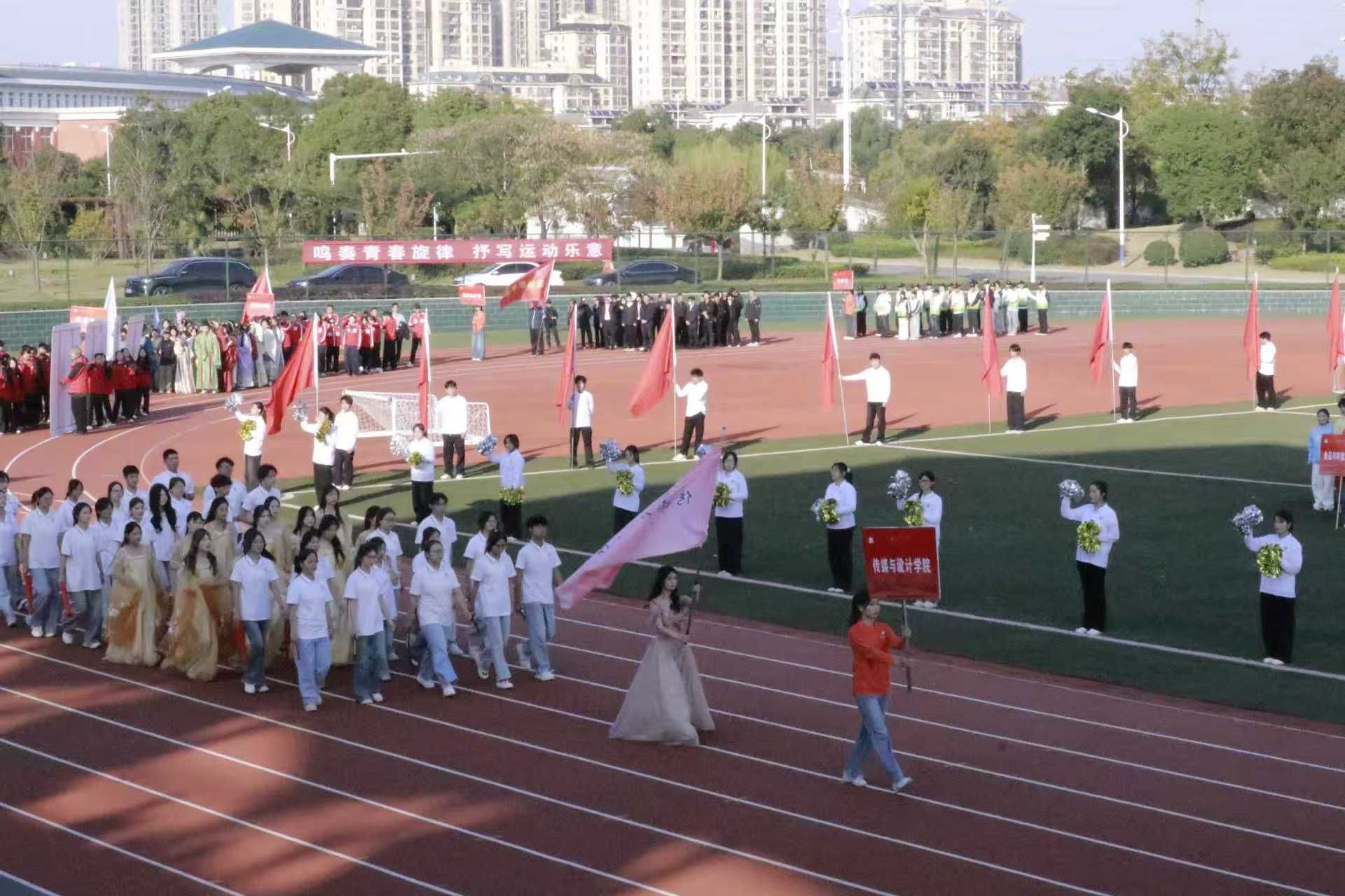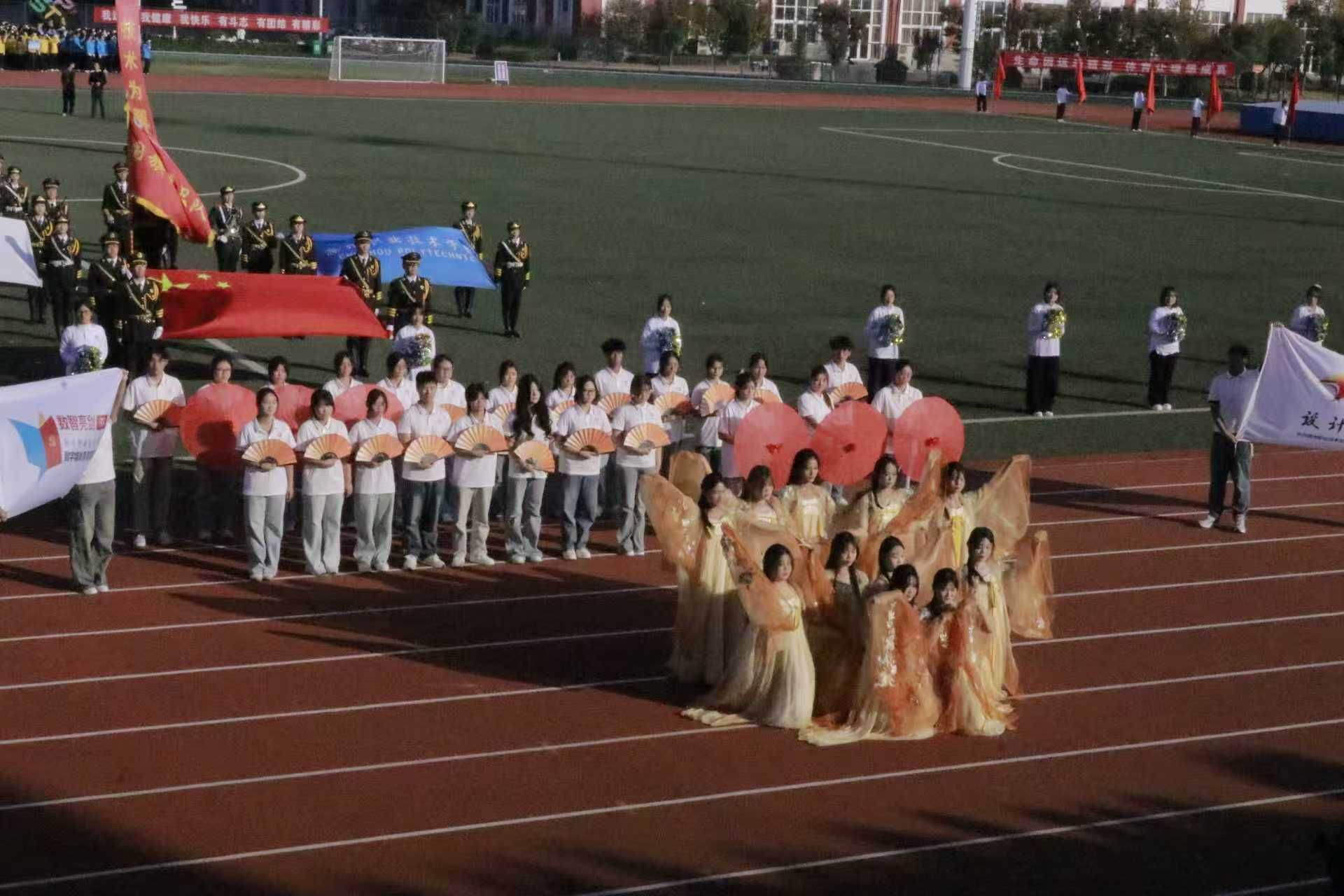 伴随着激昂的运动员进行曲,各学院方阵依次入场。传媒与设计学院学子以一场融合专业特色与艺术创意的表演惊艳全场。他们通过灵动的队形变换与富有表现力的肢体语言,将青春活力与艺术追求完美融合,展现出学院积极向上、勇于创新的精神风貌,为整场开幕式注入了蓬勃的创意与活力。